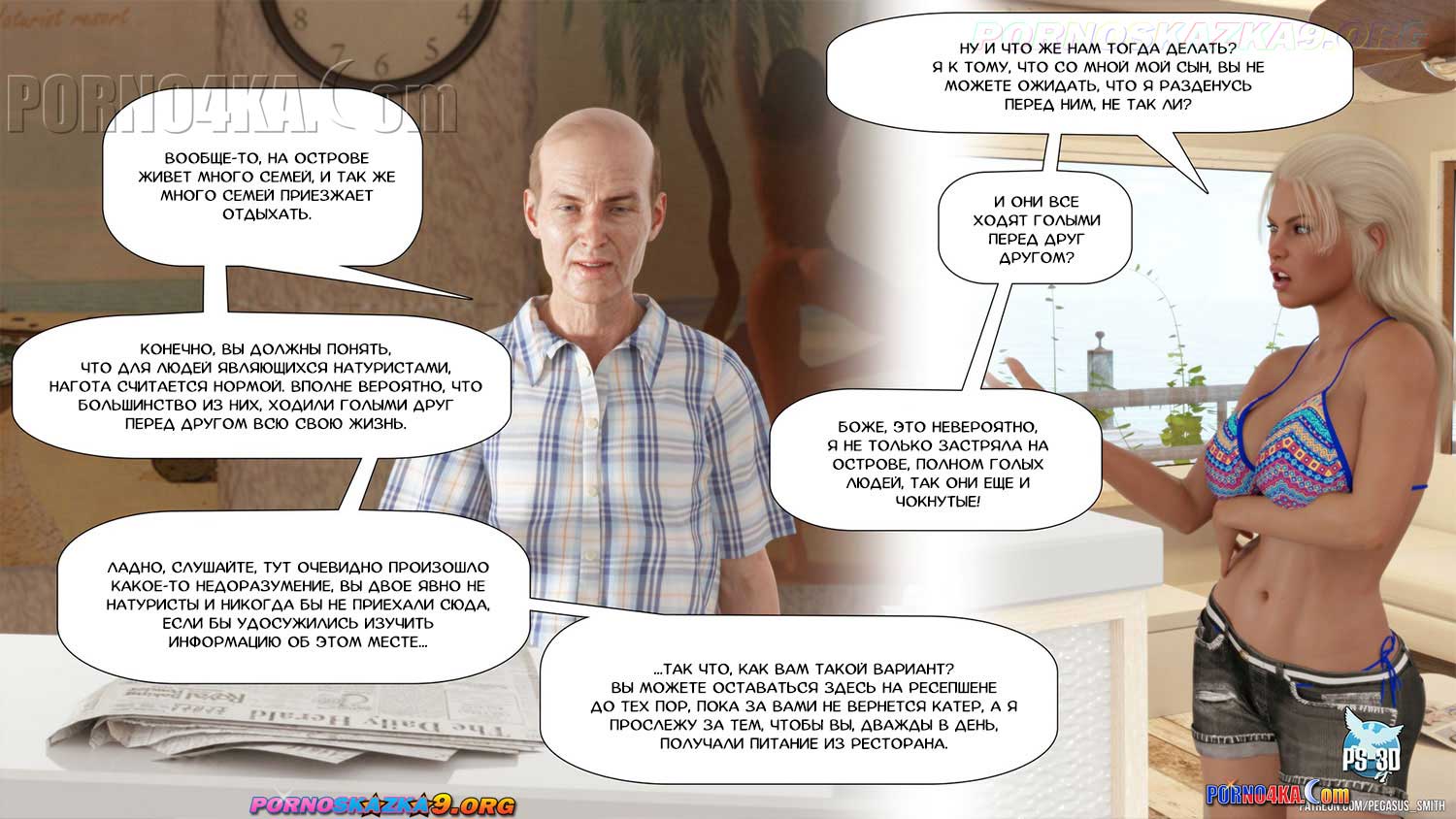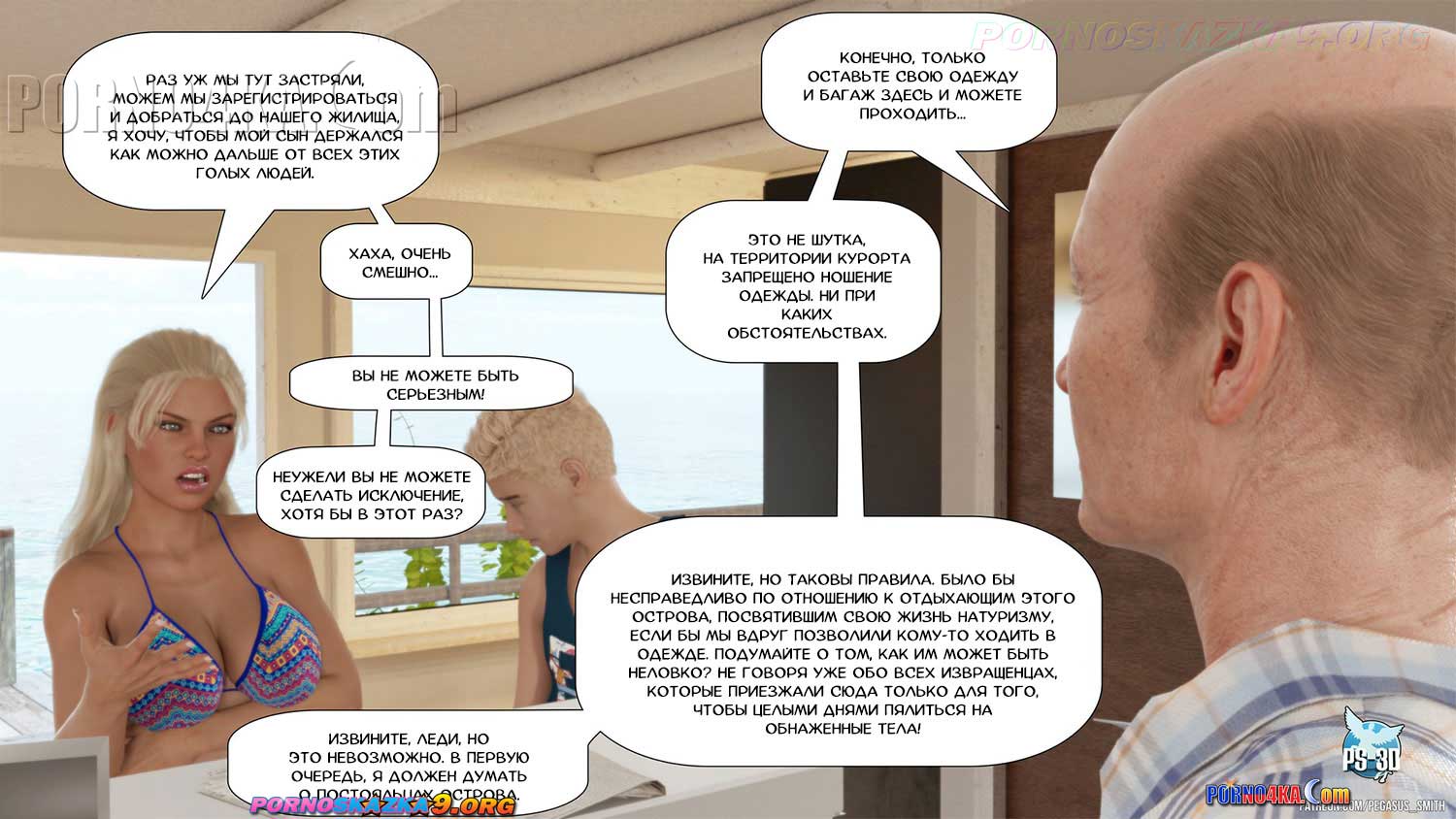 Порно комикс Нагишом. Нудистский курорт. Часть 1.