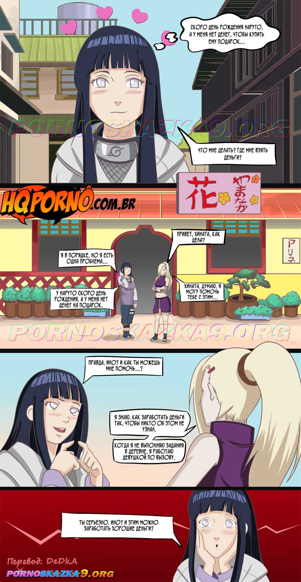 Скоро день рождения Наруто, а у Хинаты нет денег, чтобы купить ему подарок… На помощь Хинате приходит ее подруга, Ино, она предлагает ей заработать денег, поработав девушкой по вызову…