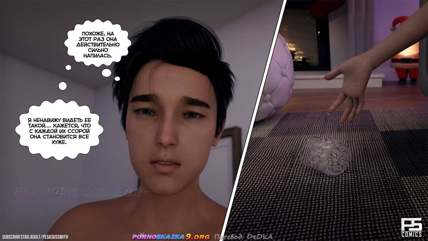 Порно комикс Праздничный блюз. В первую ночь Нового Года Уиллу не дает покоя очередная ссора его родителей. Крики и громкие голоса стали уже слишком привычными… ведь они пилили друг друга в течение всего праздничного времени, а теперь, похоже, дело близится к развязке…