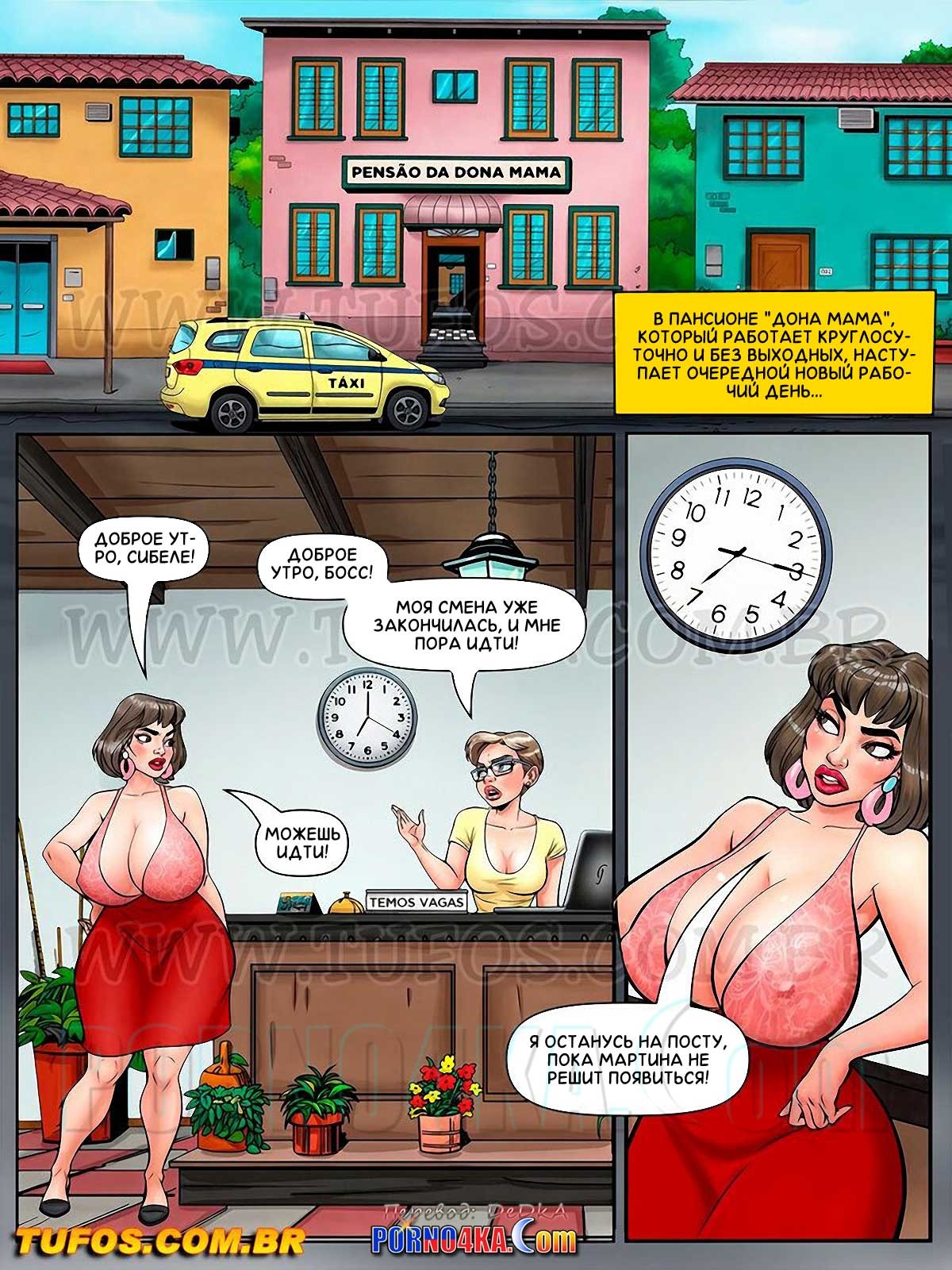Секс комикс Дона Мама. Часть 1: Пансион Дона Мама. Регистрация. В пансионе «Дона Мама», который работает круглосуточно и без выходных, уже рассвело… Марта, более известная как Дона Мама, — владелица этого заведения. Он замужем за Сержаном уже более двадцати лет, она мать Мартины и Сержиньо, она очень строга с детьми, но с другими она очень часто — просто «мамочка»! У семьи всегда суматошный распорядок дня, и этот день не был исключением…