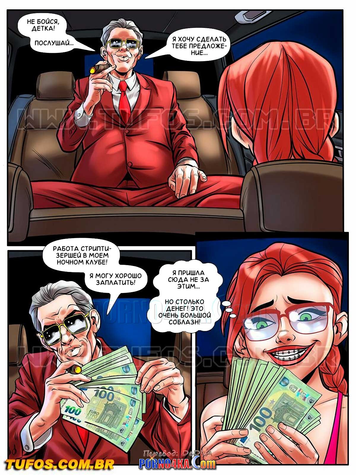 Секс комикс Похотливая ботанка. Часть 9: Проститутка на одну ночь. Эпизод 2. A Nerd Ninfomanca. Tufos Богатый мужчина предложил Эмме работу стриптизершей в ее ночном клубе. Выйдя на сцену, девушка стала стесняться, но затем взяла себя в руки и устроили лучшее шоу в истории клуба…