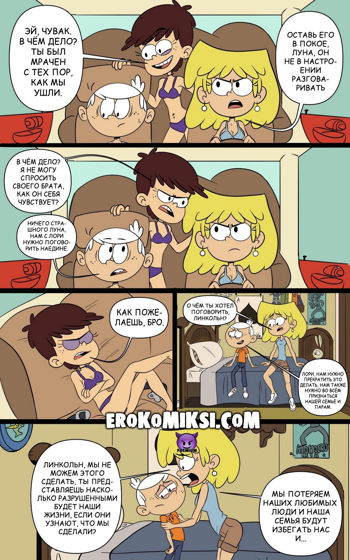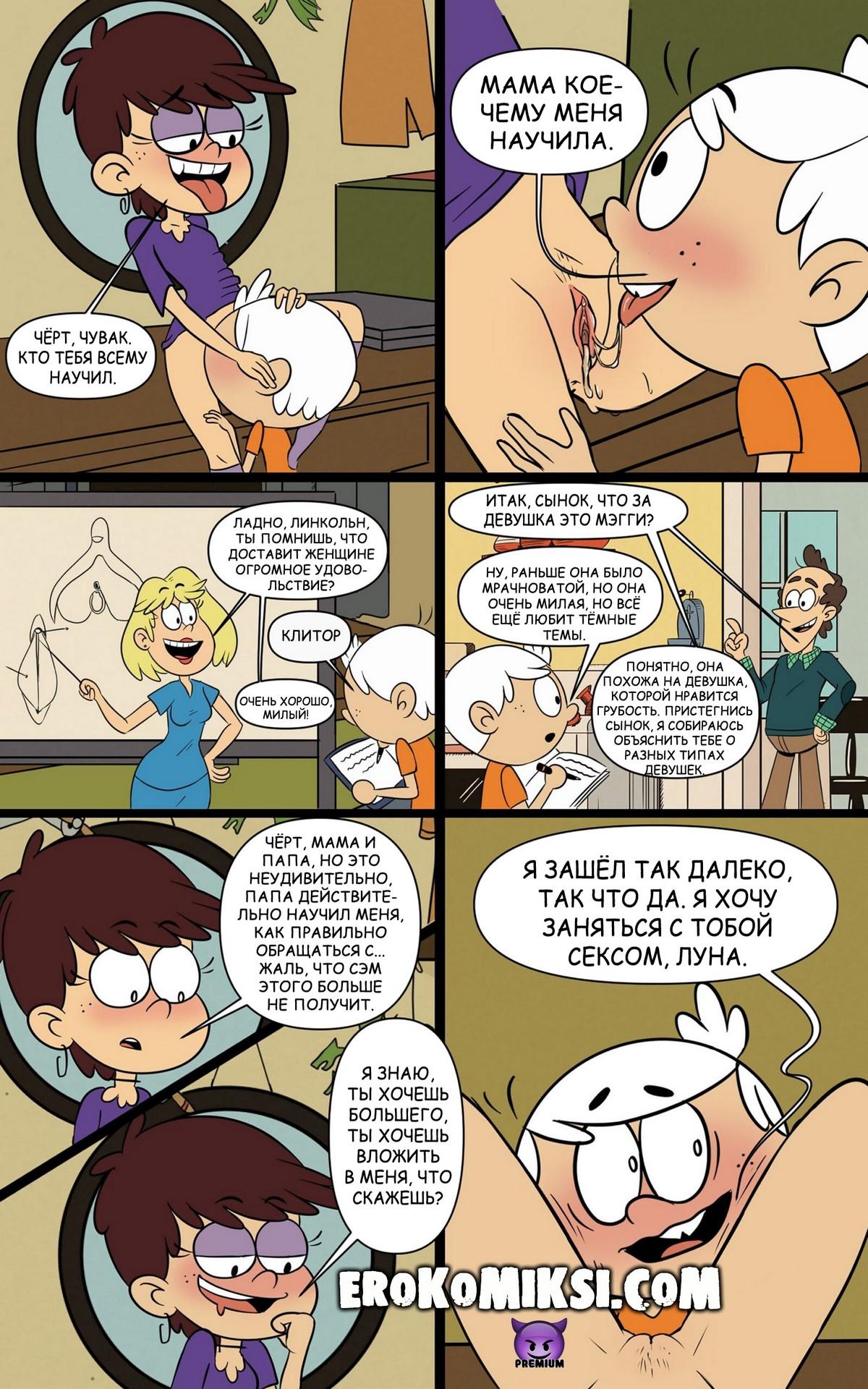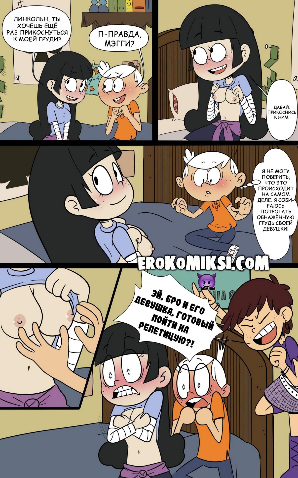 Порно комикс Мой Шумный Дом. Тайна раскрыта. Линкольн уже давно поёбывает своих сёстер Лори и Луны втихоря от своей девушки. Но это разъедает его изнутри и он решает рассказать всё Мэгги…