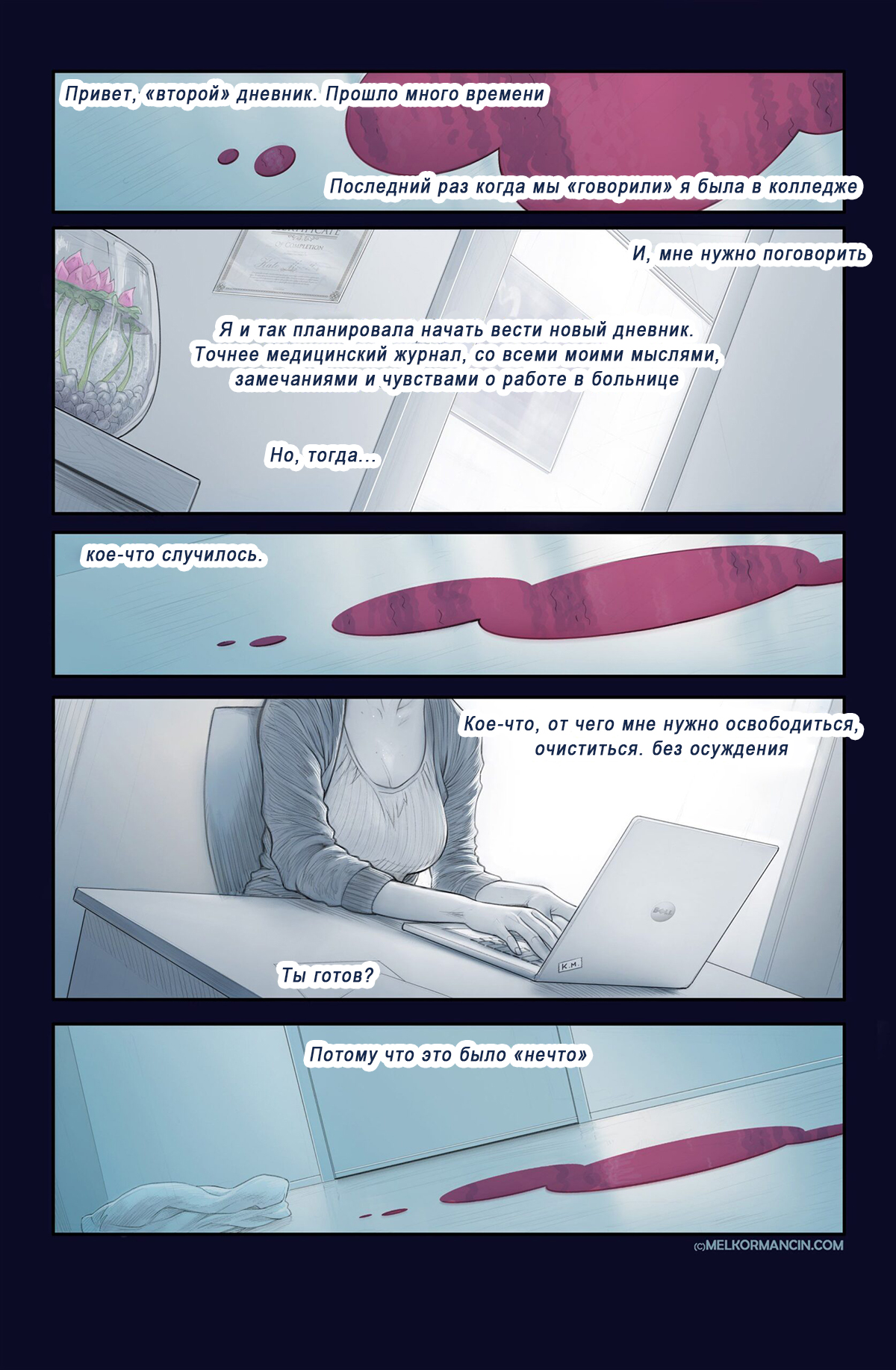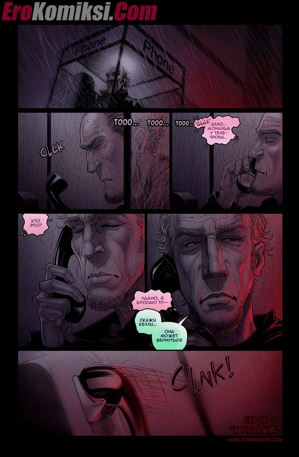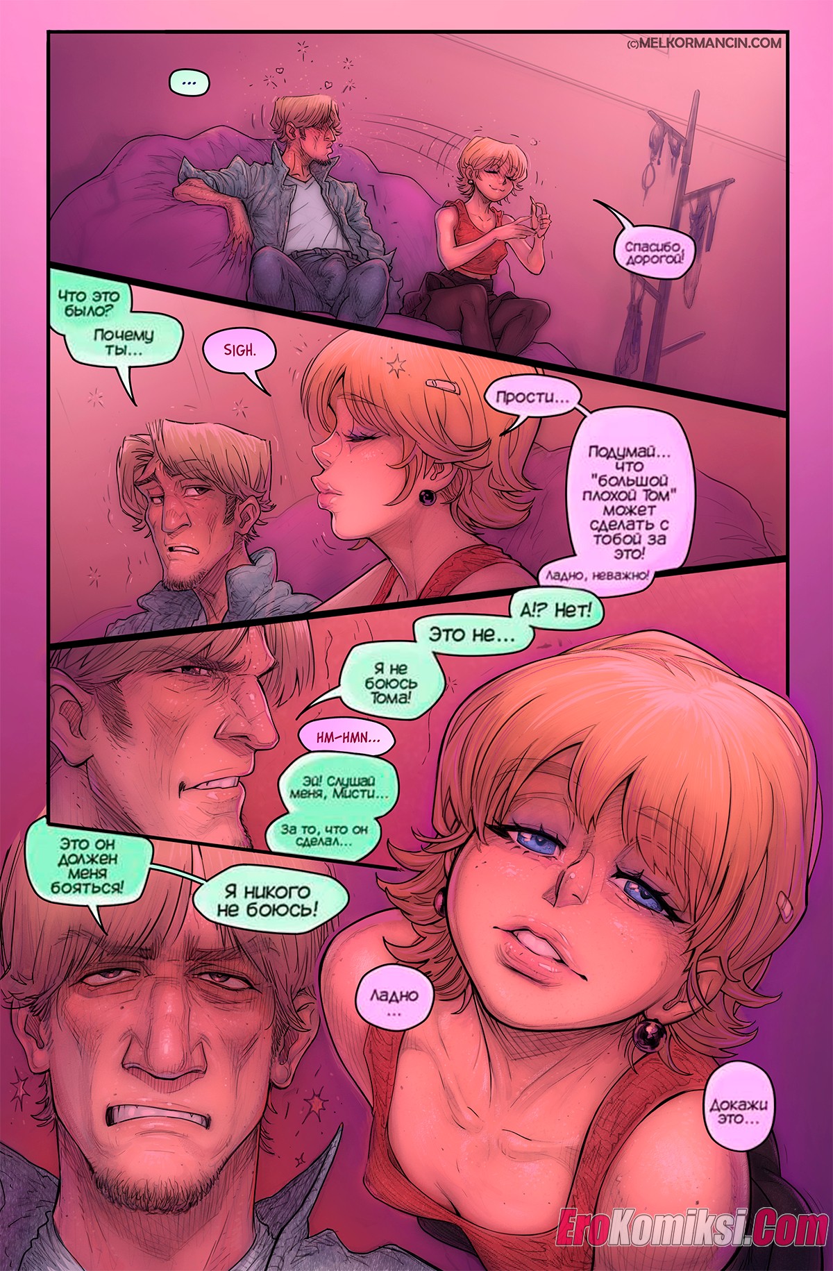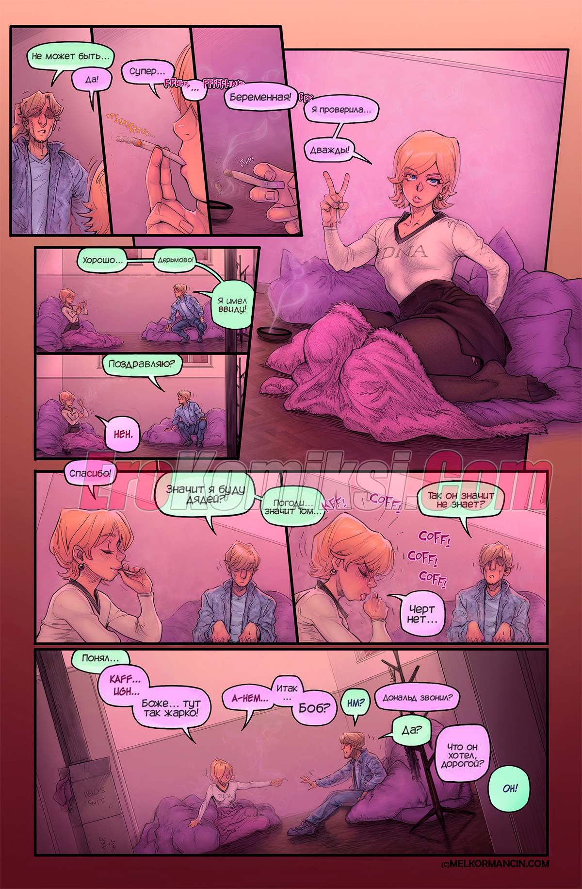 Секс комикс О девушке. About a girl. Melkor Mancin Парнишка приехал к своей подруге на новоселье. По дороге он прикупил фруктов, чтобы хорошо провести с ней время, но внезапно раздался телефонный звонок, который их потревожил..