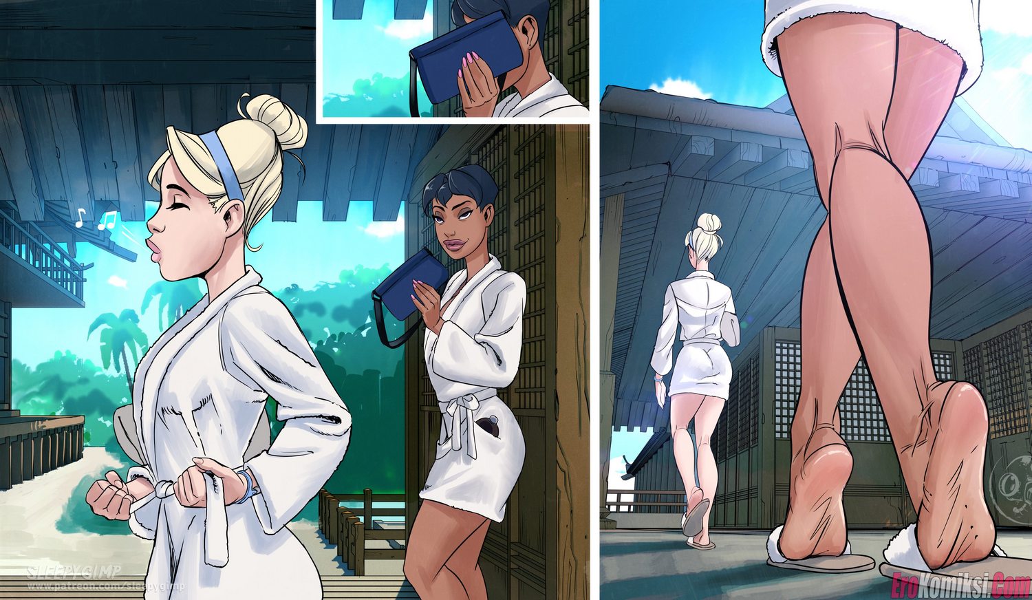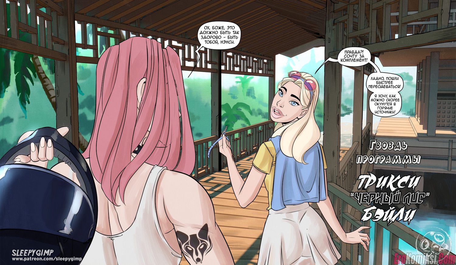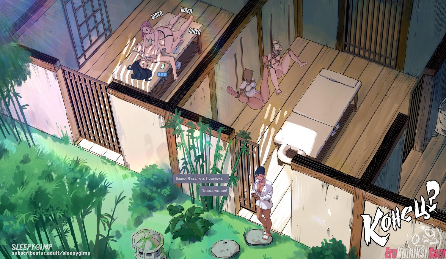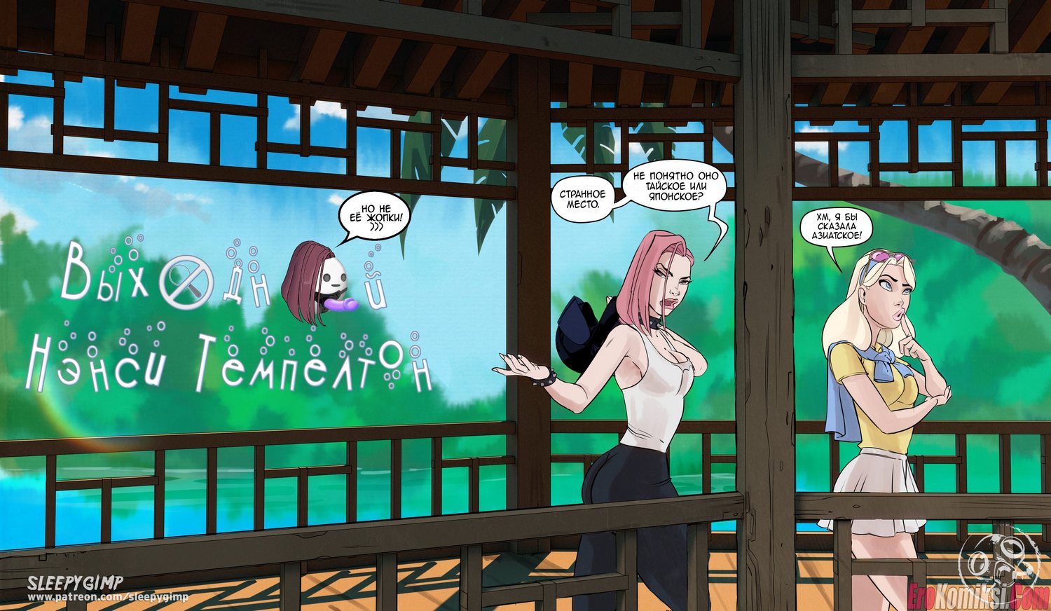 Секс комикс Выходные Ненси. Две развратные сучки с крупными дойками и любительницы БДСМ-развлечений отдохали в спа-салоне и нашли новую сексуальную жертву…