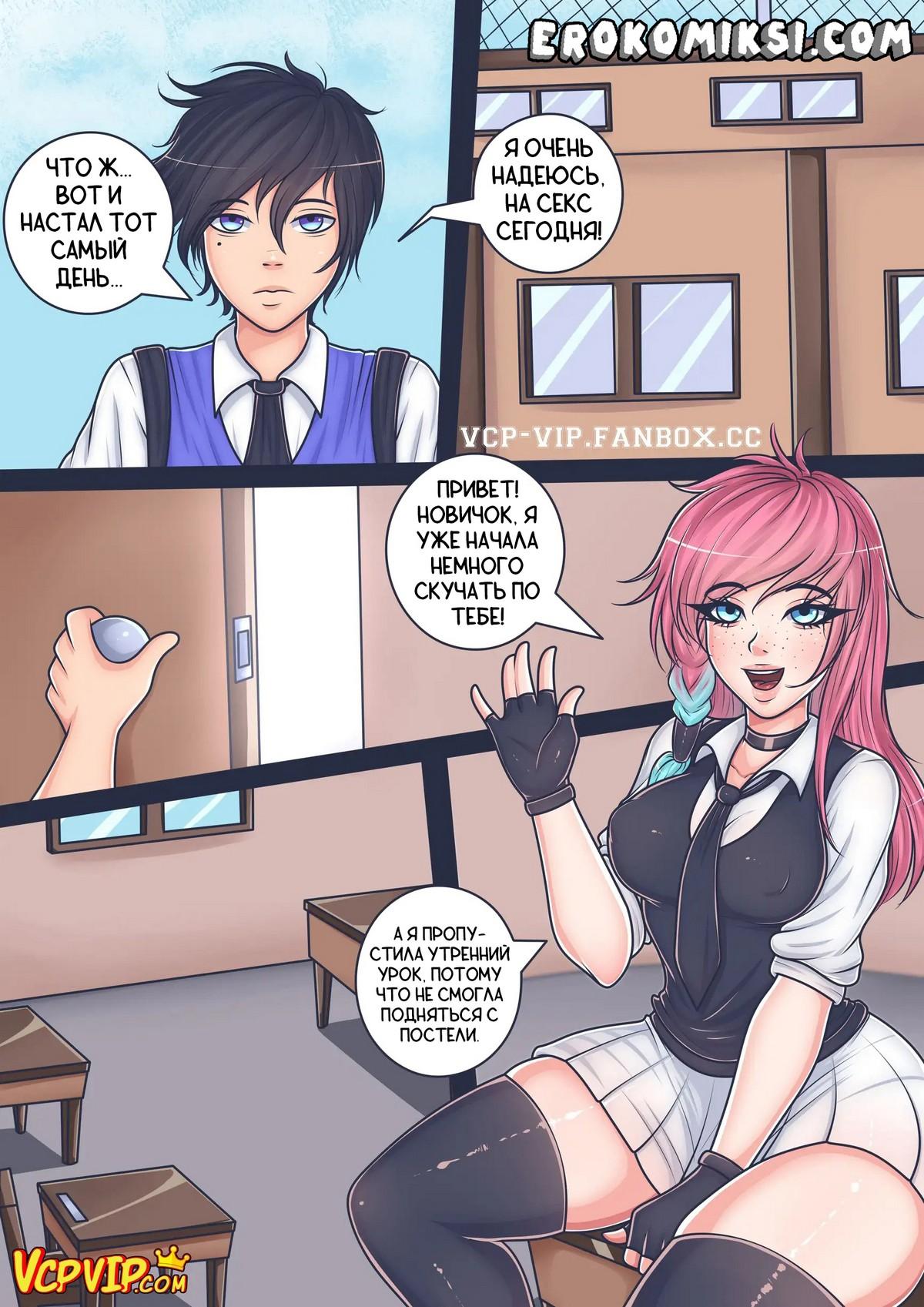 Секс комикс Академия секс очков. Часть 2. Очередной будничный день Хироки с очень грязной шлюшкой Каэми, которая очень сильно жаждет его член, а так же с её сестрёнкой, которой тоже интересна грубая ебля…