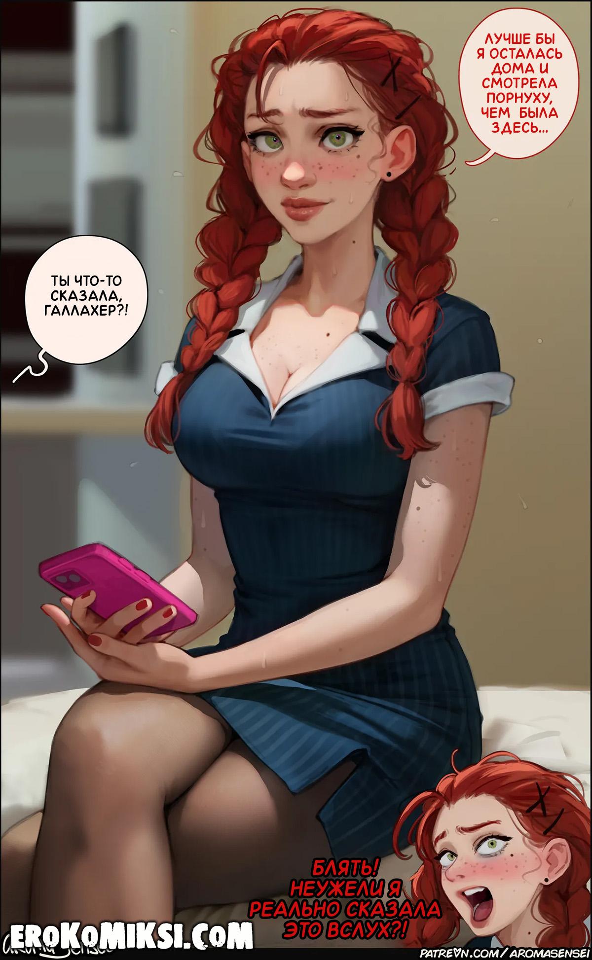 Секс комикс Aroma Sensei. Суки с Уолл-Стрит. Мэри работает стажёркой в крупной финансовой компании и исполняет все прихоти своей строгой начальницы, Лисбет Ковальски, которая является мастером своего дела. Мэри устала от стервозности Лисбет, и мечтает, чтобы ту как следует оттрахали, чтобы она стала немного добрее…