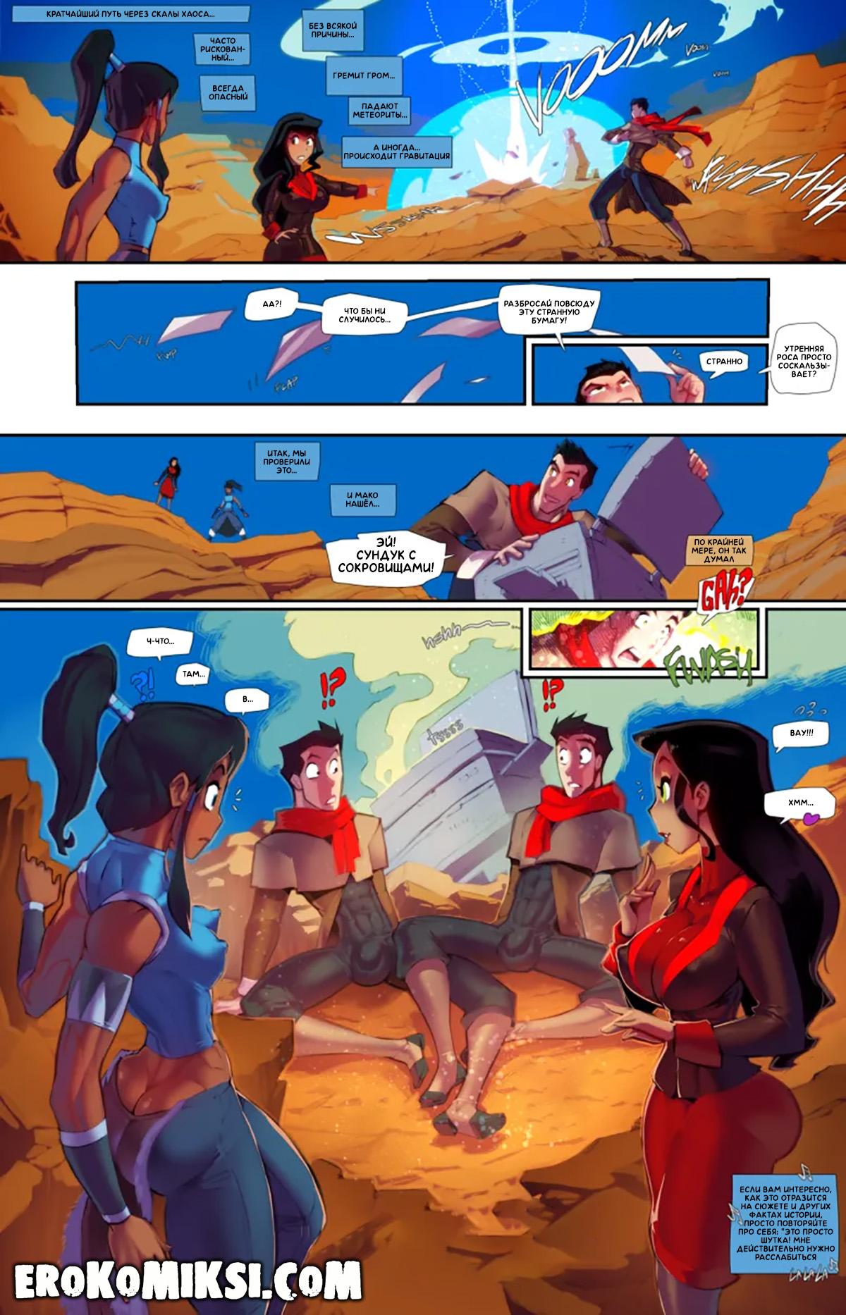 Секс комикс Аватар. Новые возможности. Во время поисков сокровищ, Мако открыл найденный сундук, однако, вместо сокровищ, он волшебным образом раздвоился, чему крайне обрадовалась Асами, которой теперь не нужно будет делиться пареньком со своей подругой Коррой, так как теперь у каждой из них будет свой собственный Мако с огромным членом, который может как следует оттрахать её тугую киску…