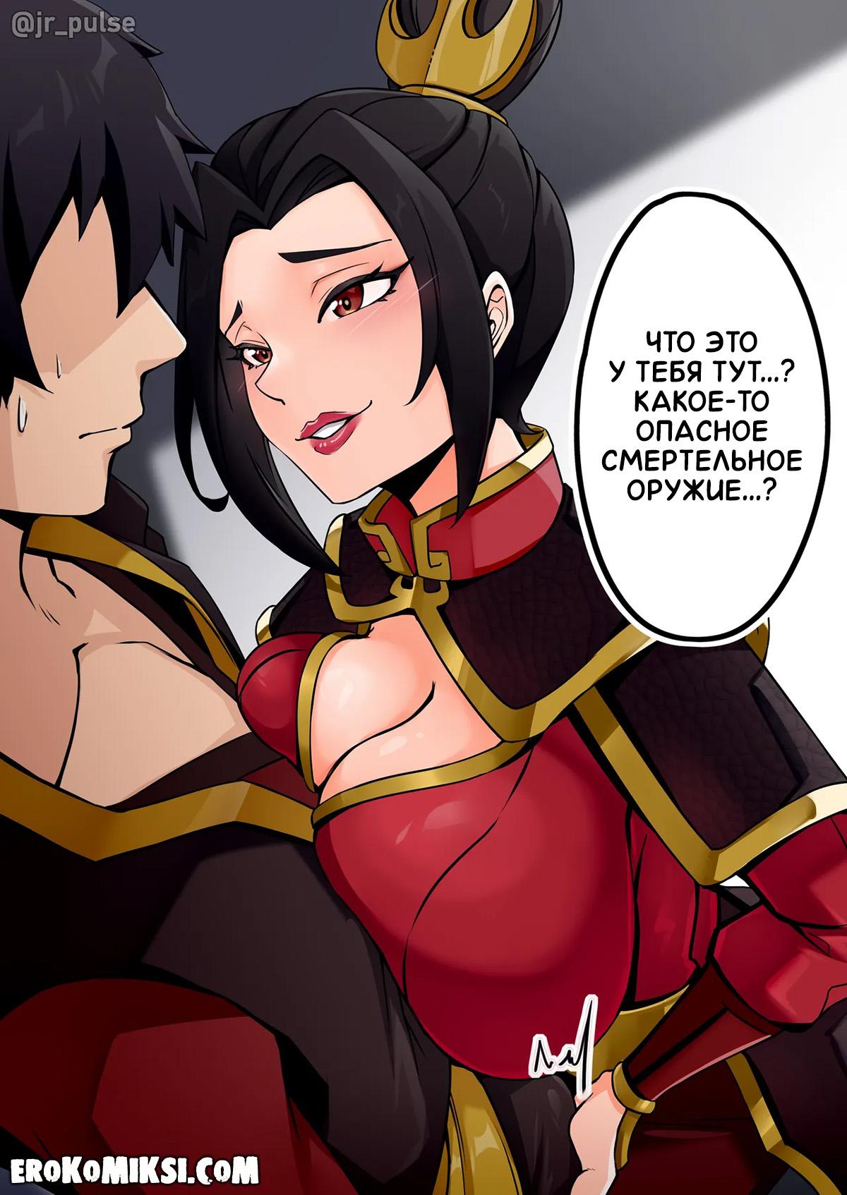 Секс комикс Аватар. Смертельное оружие. Азула почувствовала в штанах Зуко его твёрдый член, от чего сразу же возбудилась и ей захотелось его пососать, а затем она позволила пареньку как следует трухнуть её и кончить в свою тугую киску…
