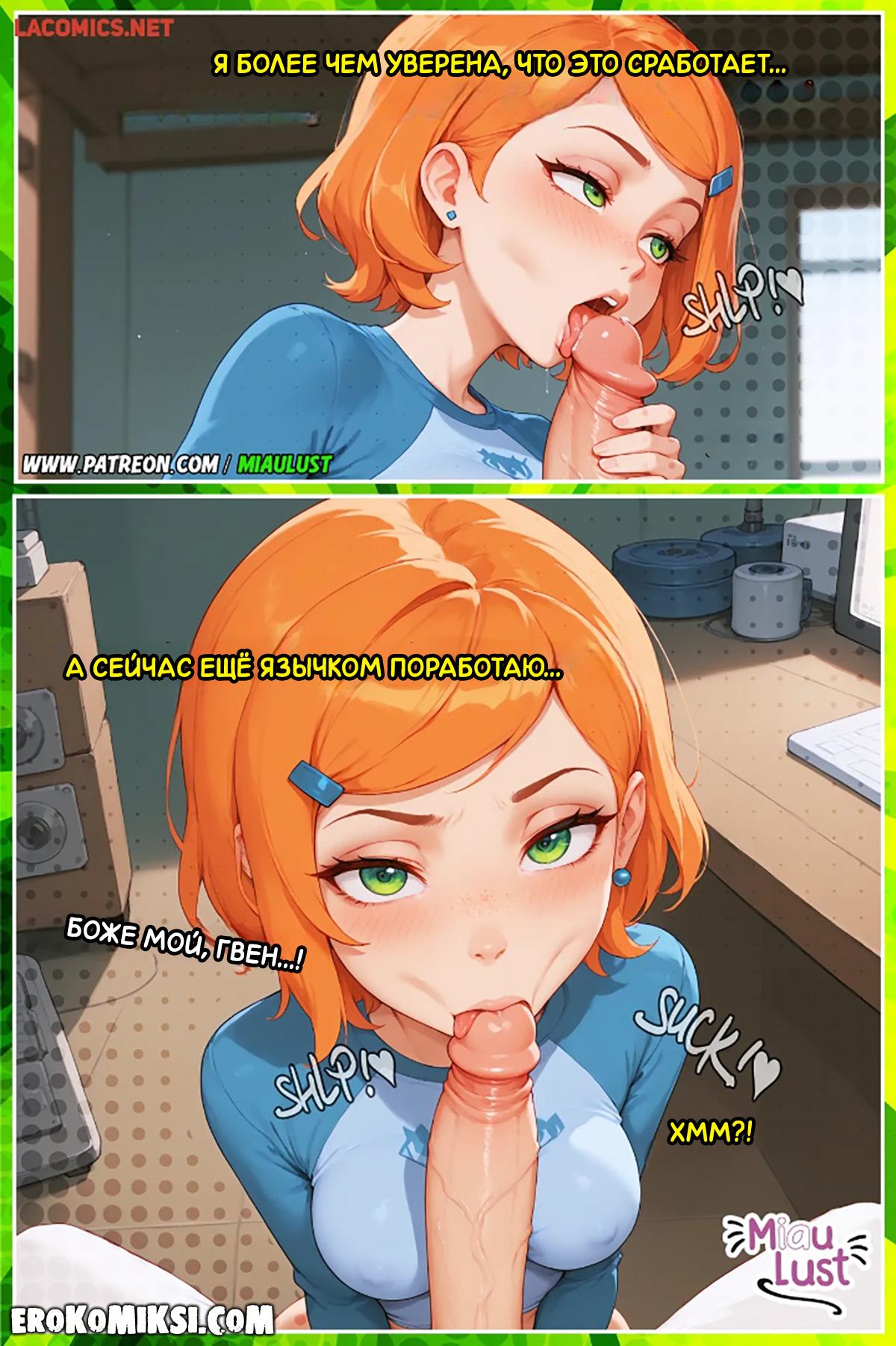 Секс комикс Бен 10. Первая помощь. Чтобы помочь Бену вылечиться от яда, Гвен вытаскивает из штанов его твёрдый член и принимается его отсасывать, чтобы яд вышел вместе с его горячей спермой…