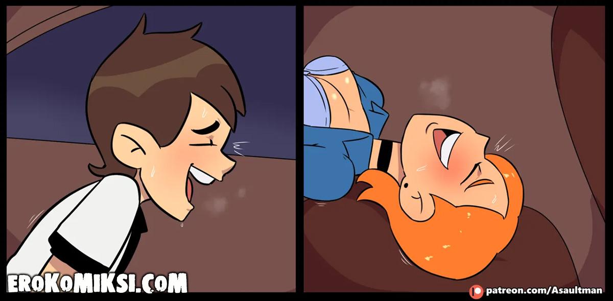 Секс комикс Бен 10. В дороге. Гвен и её семья ехали в машине. После того, как она пересела на колени Бена, она начала дразнить его своей огромной задницей. Через некоторое время Бен не выдержал и трахнул эту злобную сучку…