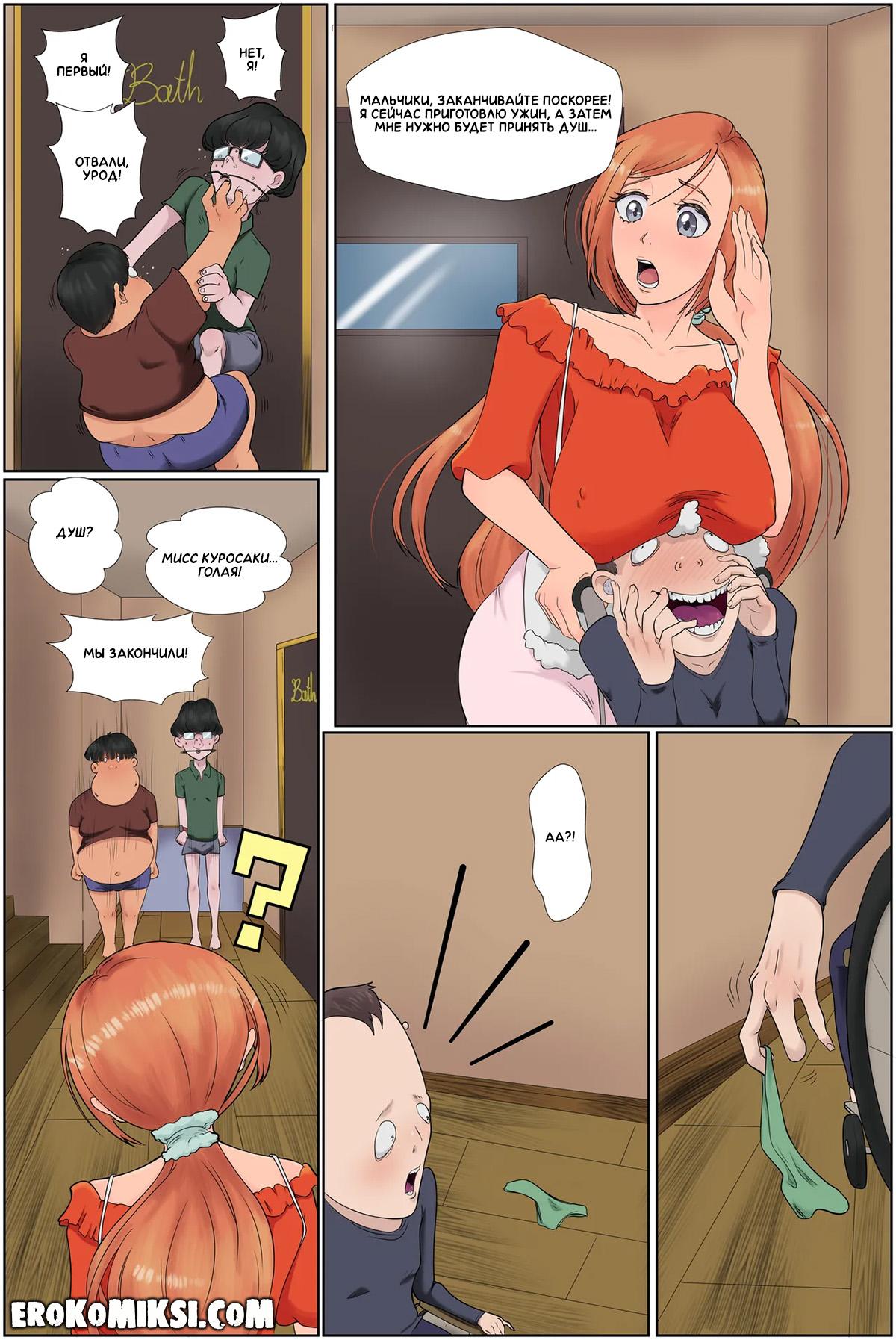Секс комикс Bleach. Адские выходные. По просьбе соседки, Орихиме вынуждена остаться следить за её уродливыми озабоченными сыновьями, у которых постоянно стоят члены в присутствии красавицы…