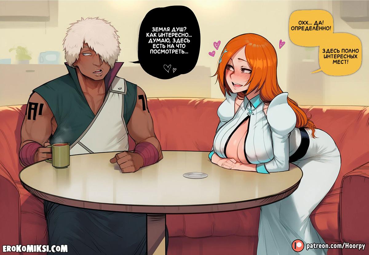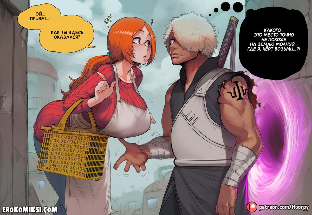 Секс комикс Bleach. Путешествие между мирами. Даруи путешествует между мирами, но никак не может найти землю Молний, однако постоянно натыкается на Орихиме, которая с радостью встречает путешественника и постоянно даёт ему хорошенько оттрахать свои дырочки…