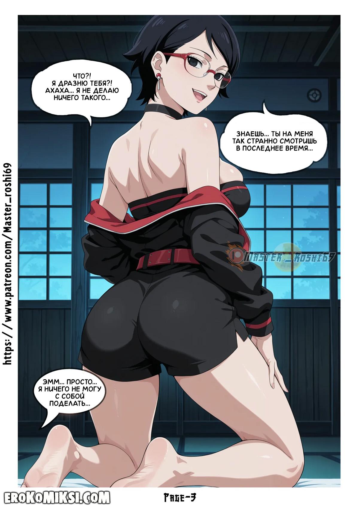 Секс комикс Боруто. Двойные судьбы. Часть 1. Зная, что Боруто уже давно в неё влюблён, Сарада начинает с ним заигрывать и принимается сосать его большой твёрдый член, а затем, встаёт раком, чтобы Боруто как следует оттрахал её тугую киску…