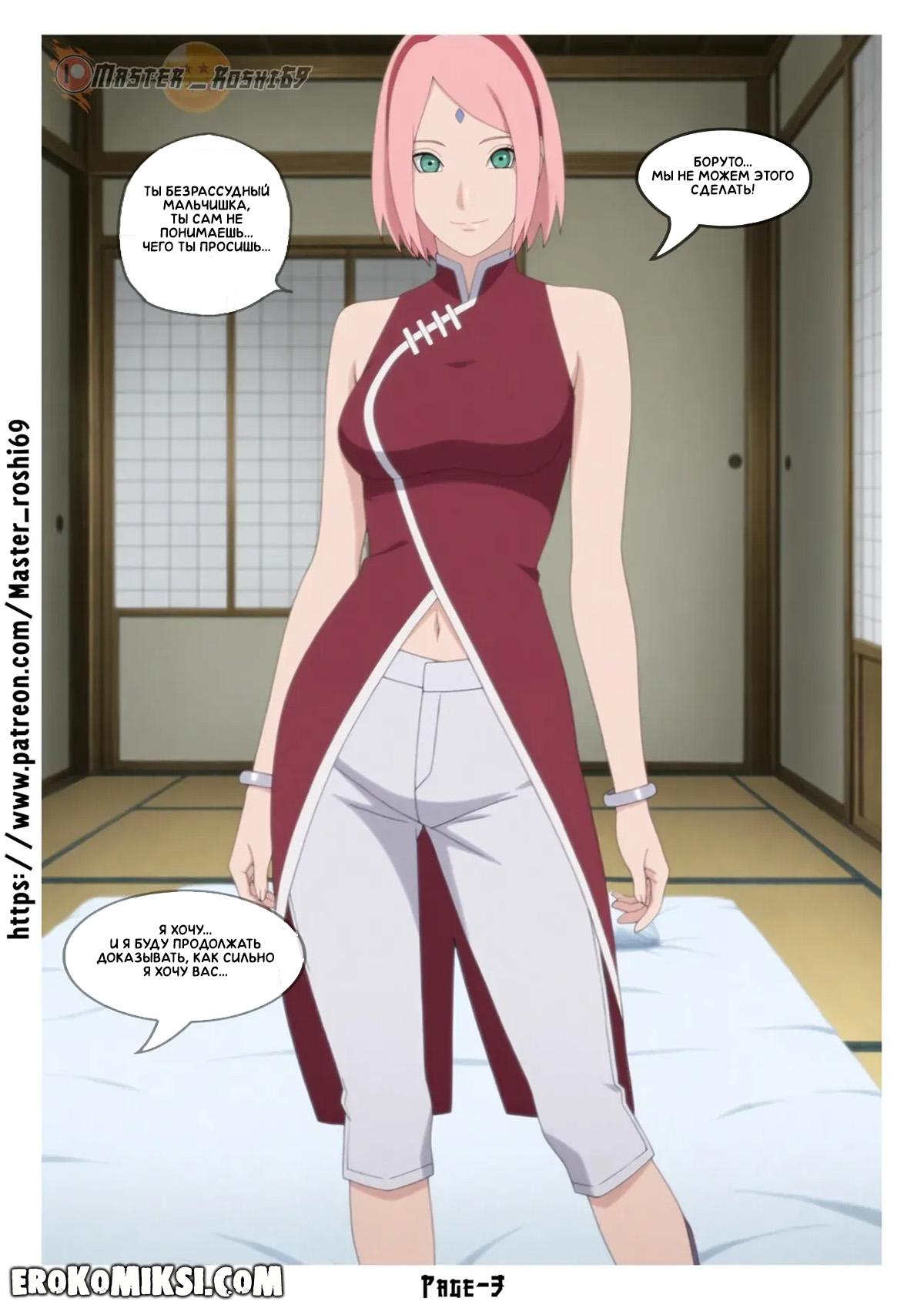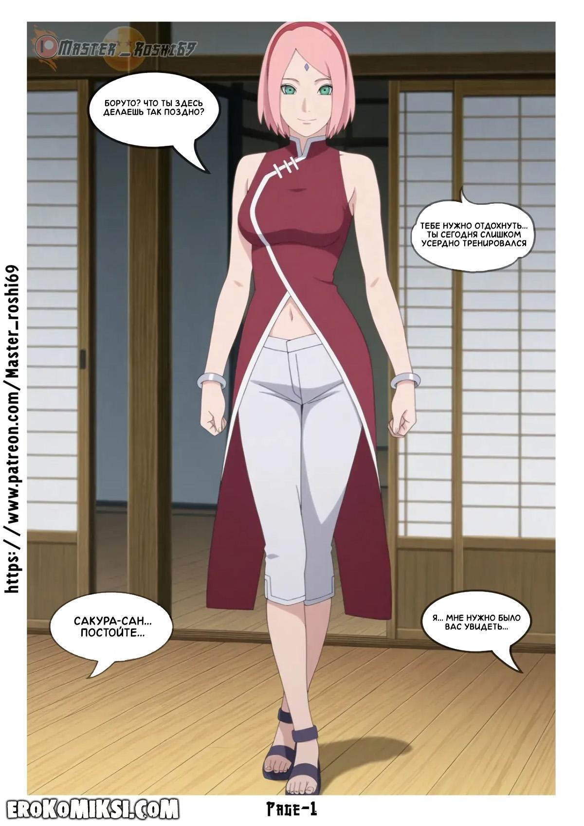 Секс комикс Боруто. Двойные судьбы. Часть 2. Боруто признался Сакуре, что давно мечтает её трахнуть, и к его удивлению, Сакура тоже об этом мечтала, так что она сперва отсосала его твёрдый член, а потом позволила оттрахать свою сочную киску…