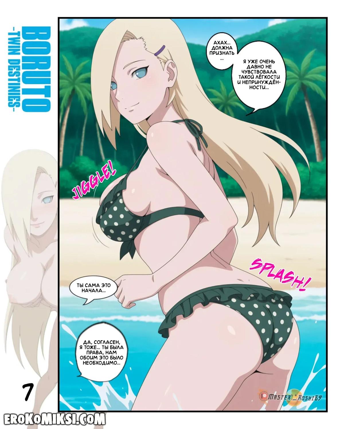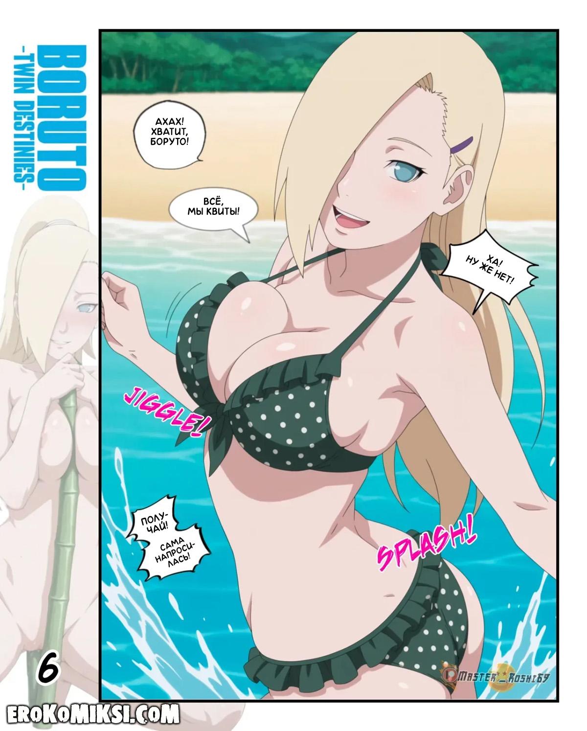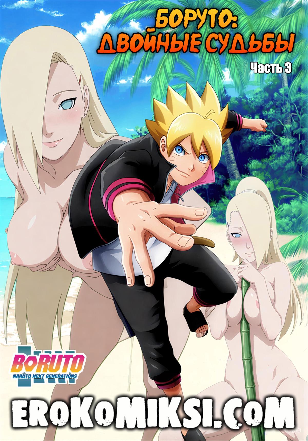 Секс комикс Боруто. Двойные судьбы. Часть 3. Боруто и Ино отправляются на пляж, чтобы немного развеяться, но увидев сексуальную задницу Ино, у Боруто встаёт член. Ино очень возбуждает твёрдый член парня и опустившись на колени, она начинает его отсасывать…
