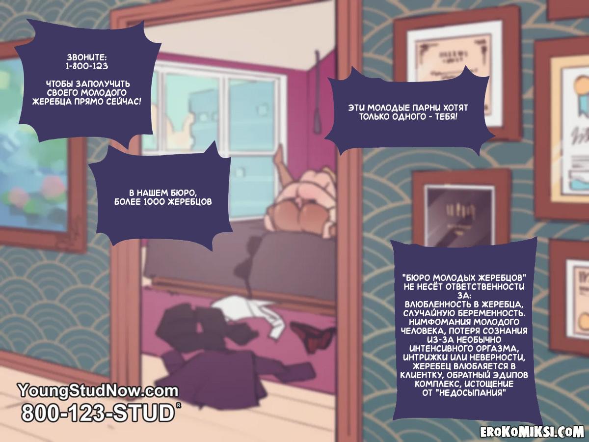 Секс комикс Бюро молодых жеребцов. Дамы всё чаще начинаю пользоваться услугами агентства «Бюро молодых жеребцов», где они заполняют анкету и получают себе молодого красивого парня, подходящего под их критерии, чтобы завязать новые отношения или просто потрахаться.