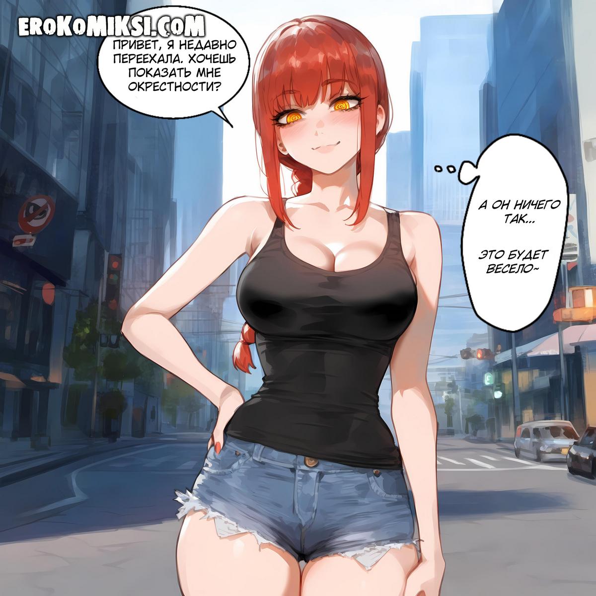 Секс комикс Человек — бензопила. Макима НТР История. Макиме по заданию надо было перехтать в новый город и чтобы не вызывать подозрений, она начала знакомиться с местными жителями. Один из них начал ей проводить экскурсию по городу, которая закончилась в постели…