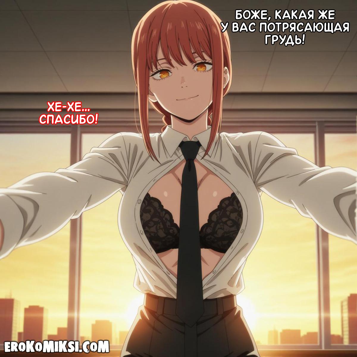 Секс комикс Человек-Бензопила. Особая награда за задание. Выполнив очередное задание, Дэнджи рассчитывал получить от Макимы свою награду, и получил от красавицы потрясающий минет, а затем ещё хорошенько оттрахал её тугую киску…