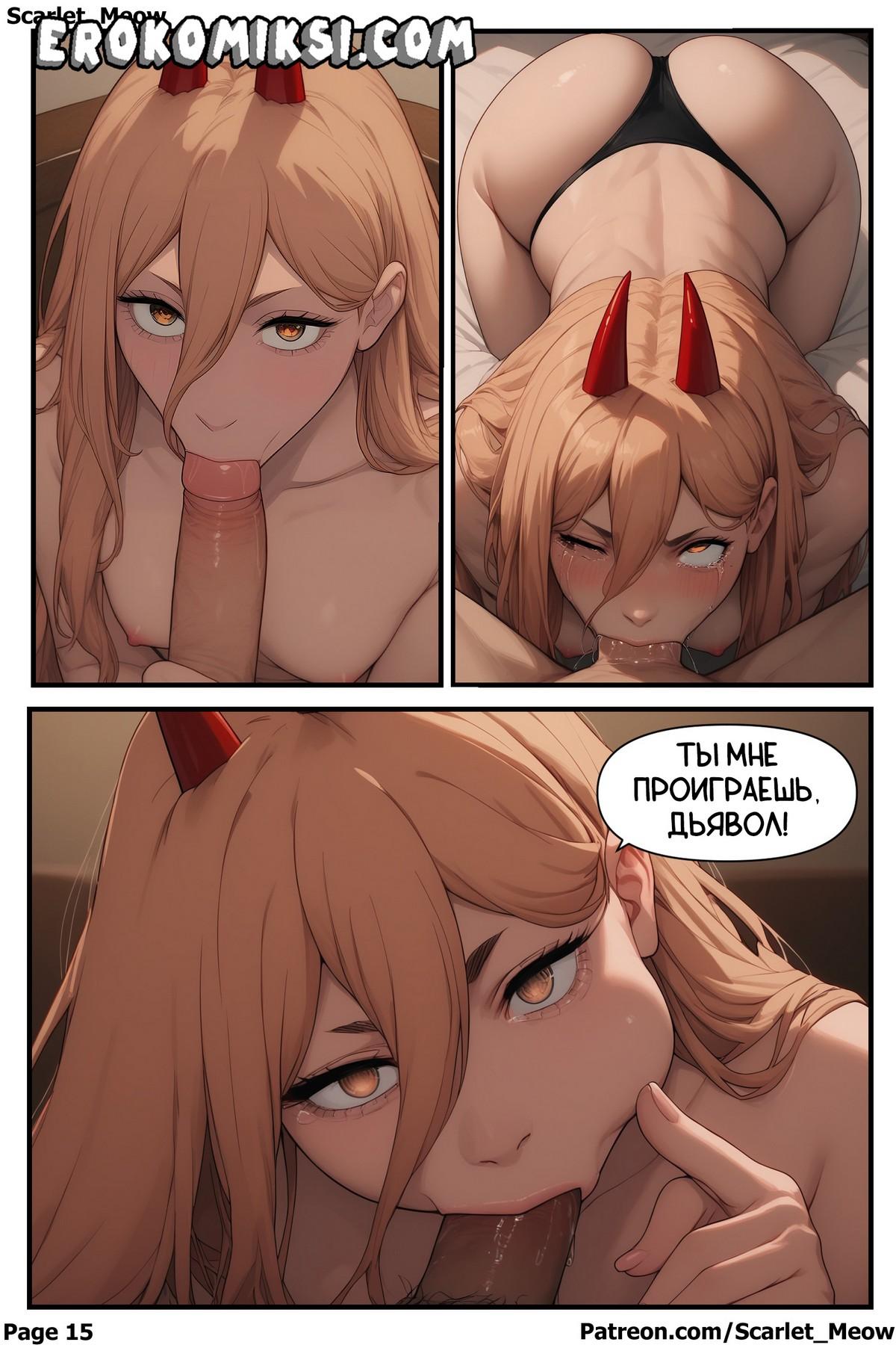 Секс комикс Человек-Бензопила. Переписанные Встречи. Часть 1: Желание Дьявола. Шлюха Пауэра начала ебаться с Денжди под предлогом изгнания дьявола, но на самом деле эту сучка просто хотела его член в своей горячей и узкой киски…