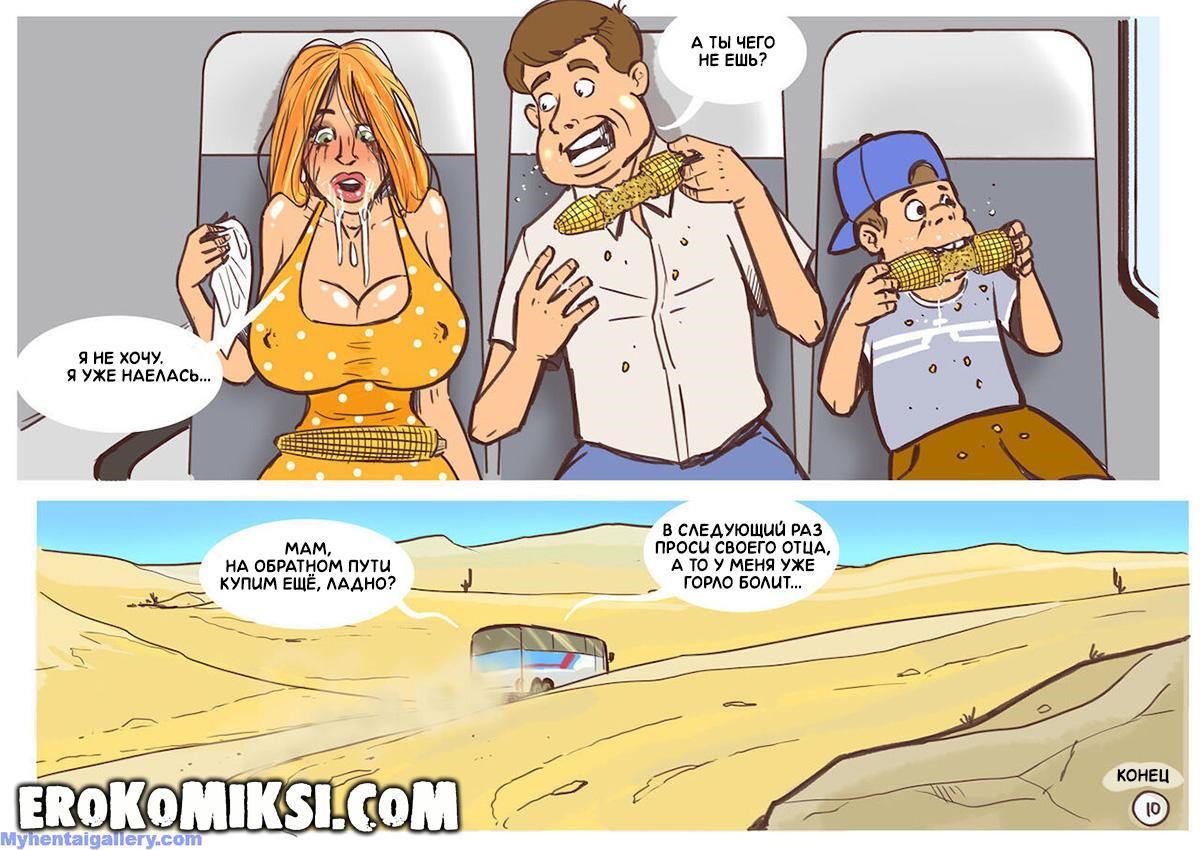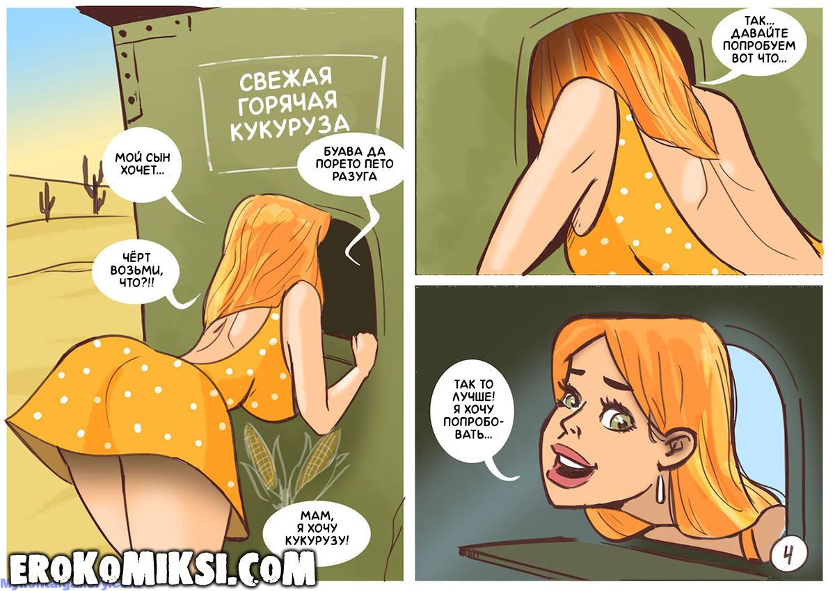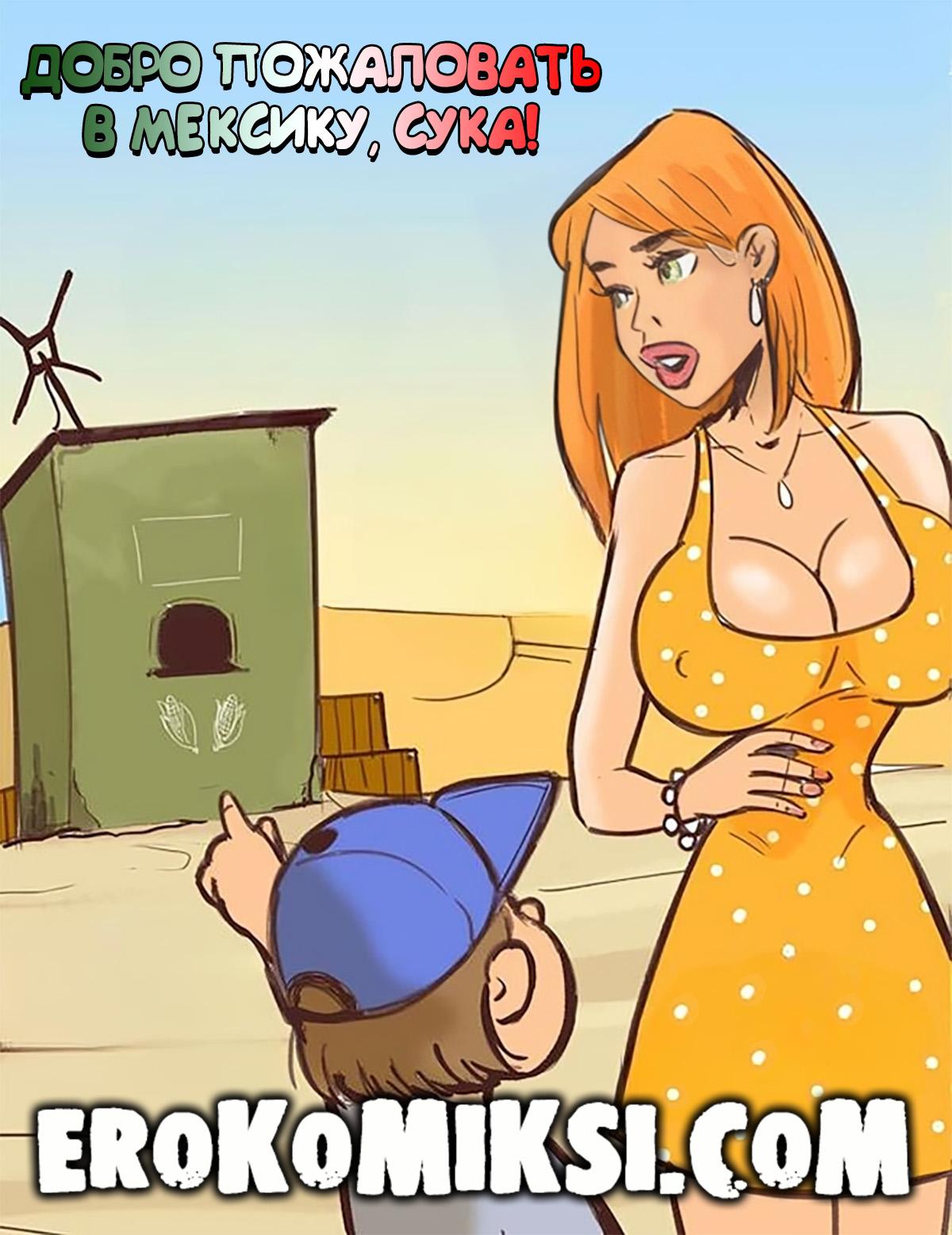Секс комикс Добро пожаловать в Мексику, сука! Во время поездки в Мексику, молодая семья остановилась у ларька с кукурузой, чтобы перекусить. У мамаши семейства вызвал подозрение ларёк с кукурузой и прежде, чем кормить кукурузой своего сыночка, она хотела попробовать её сама. Увидев сисястую красотку, мексикос вытащил из штанов свою «кукурузу» и по полной программе накормил мамашку…