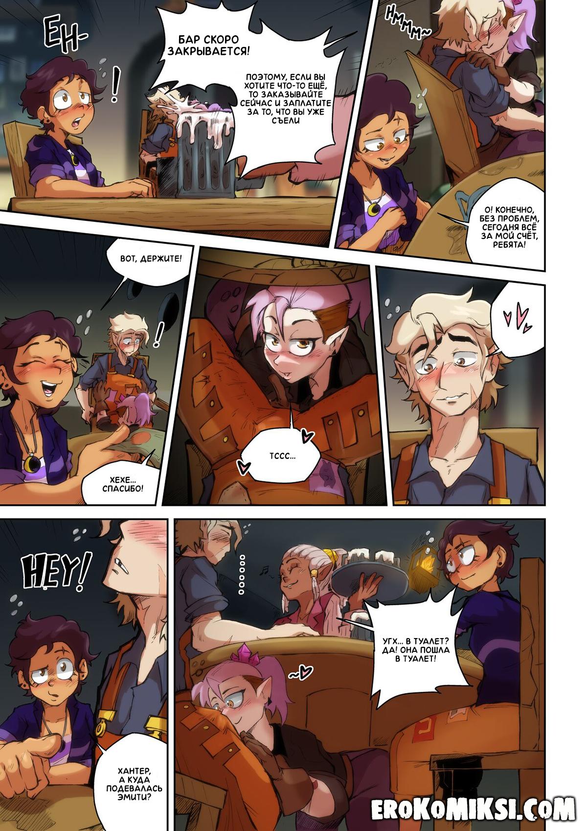 Секс комикс Дом Совы. Запретное Искушение. Луз, Хантер и Эмити выпивали в баре. Луз обратила внимание, Хантер и Эмити стали очень тесно и дружелюбно общаться в последнее время. Когда луз оплачивала счёт за выпивку, Эмити этим воспользовалась и залезла под стол. Она стянула с Хантера штаны и взяла в рот его твёрдый член, чтобы как следует ему отсосать. Она сосала до тех пор, пока Хантер не заполнил её рот своей горячей густой спермой…