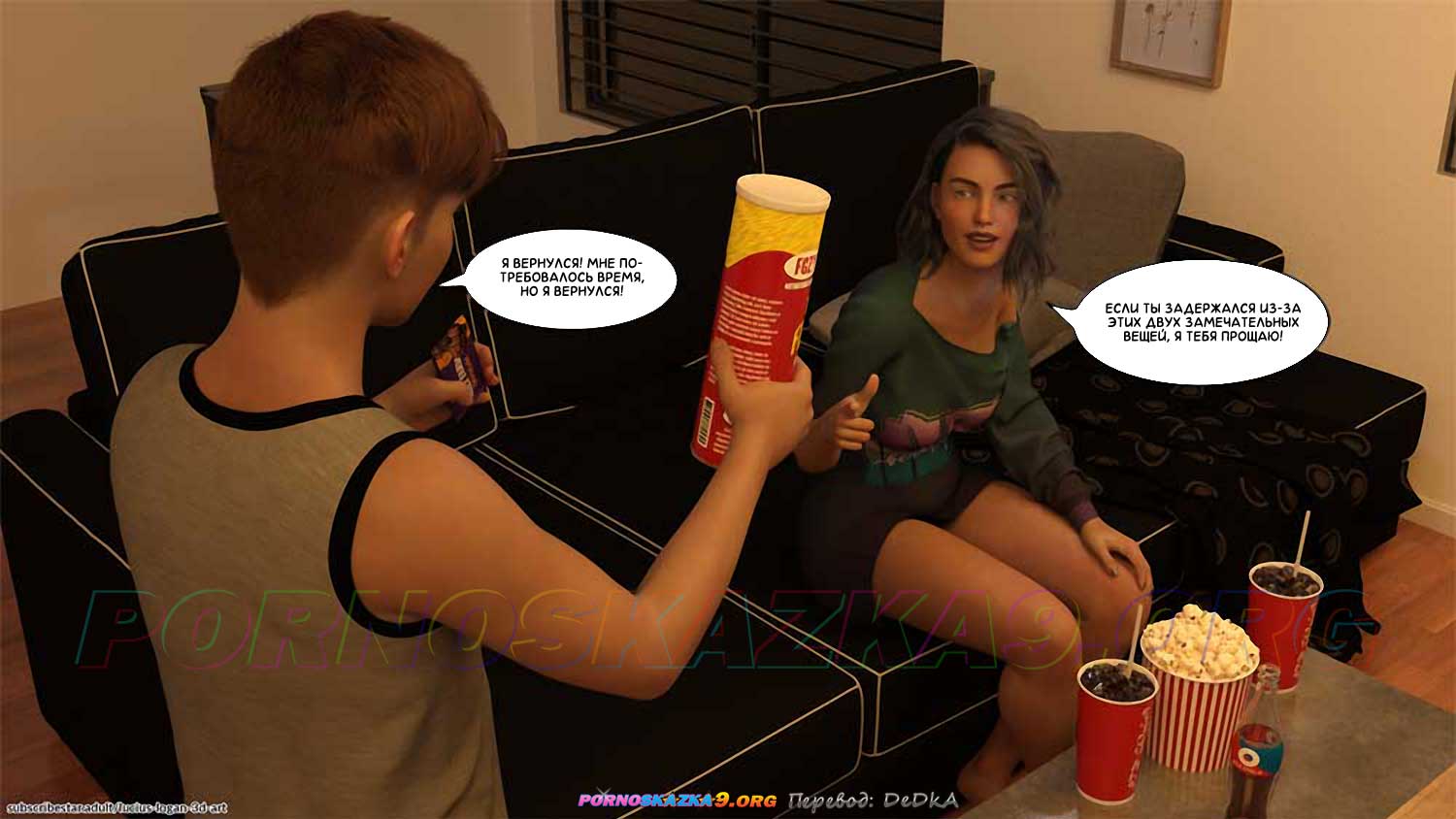 Секс комикс Домашняя работа. Часть 4. Кэтлин решила поговорить с Калелем и раз и навсегда положить конец тому, что она делала для него, якобы для того, чтобы хотя бы на время избавить его от мыслей о сексе и тем самым помочь ему сосредоточиться на учебе. Но в процессе разговора она столкнулась с тем, что Калель уже очень хорошо научился манипулировать ею, используя ее естественные чувства, такие, как похоть, ревность и даже необходимость заботиться о нем…