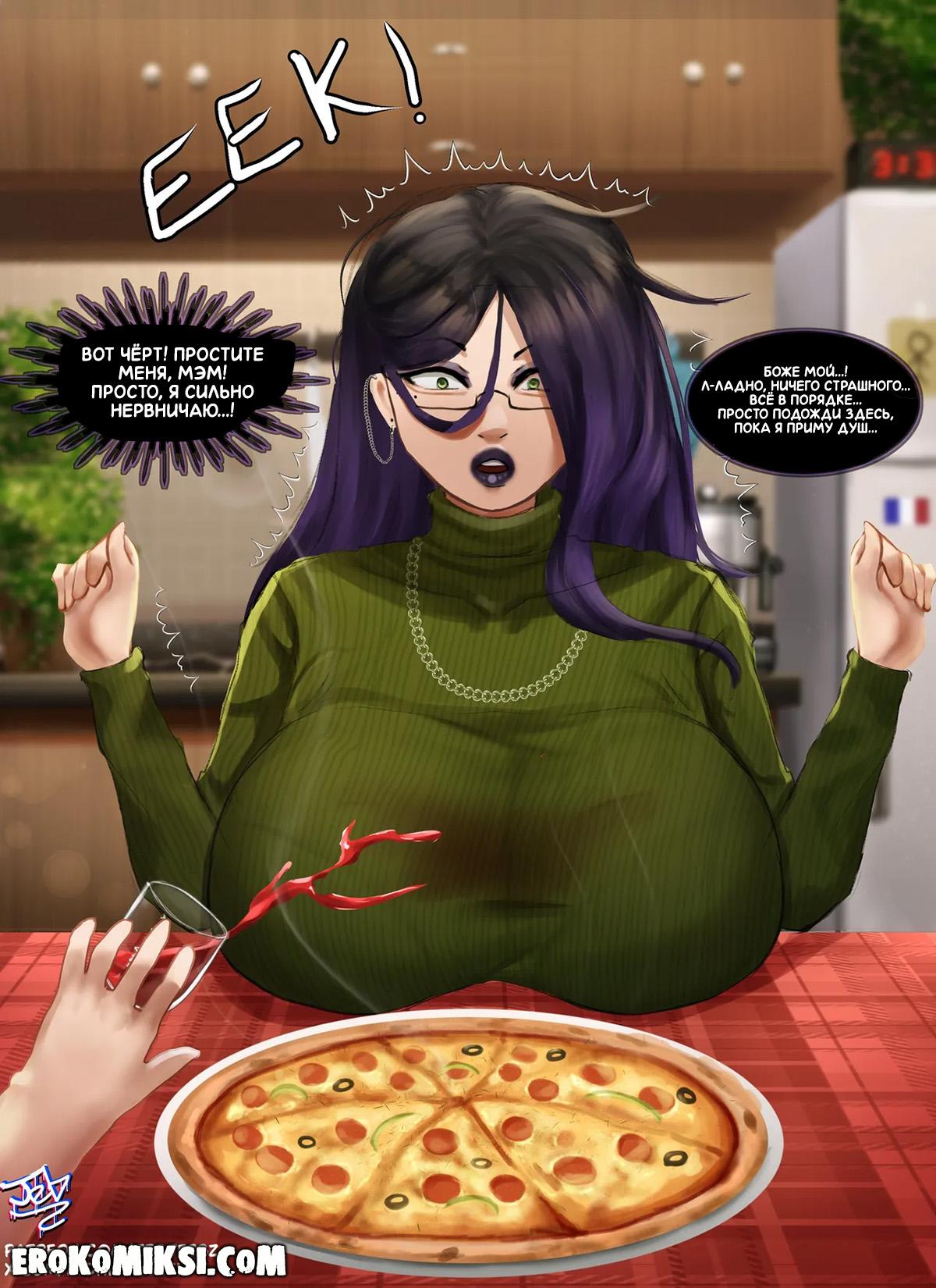 Секс комикс Доставщик пиццы. Мисс Луиза уже давно не трахалась, поэтому заказала пиццу, и когда на пороге появился доставщик, она сразу же пригласила его к себе домой. Без лишних слов она заявила доставщику о своих планах на него, и парнишка, оценив сексуальную милфу, моментально достал свой огромный член и как следует её оттрахал…