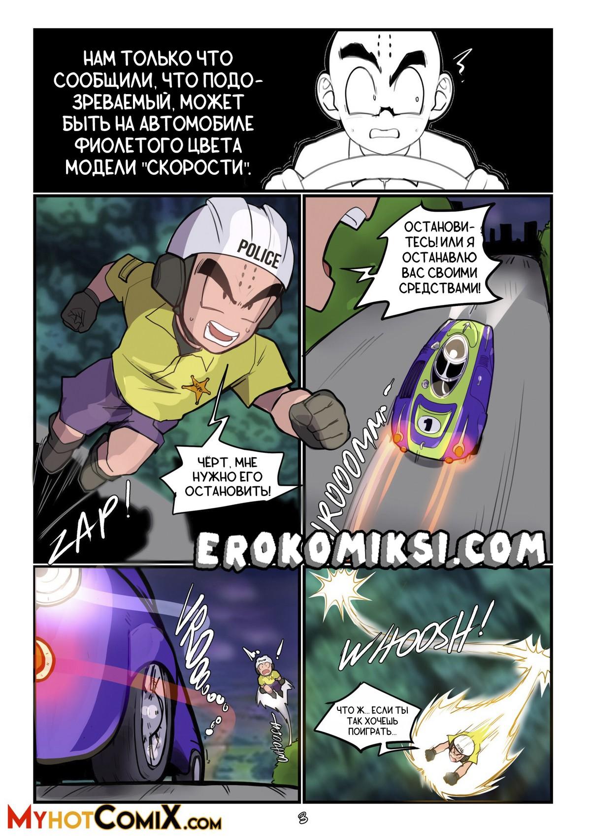 Секс комикс Драгонболл. Поймать и отпустить. Криллин преследовал вора, который украл драгоценности из ювелирного магазина. Догнав преступника, он впал в шок, ведь им была 18. Взяв её в наручники он начал жёстко и справедливо наказывать её…
