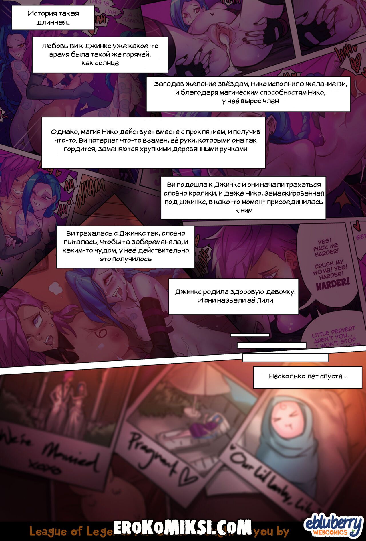 Секс комикс Джинкс. Часть 2. Джинкс и Ви были очень зависимы от секса и старались воспользоваться каждой свободной минутой, чтобы потрахаться. В последствии к ним присоединилась Нико и красотки устроили просто незабываемую групповуху…