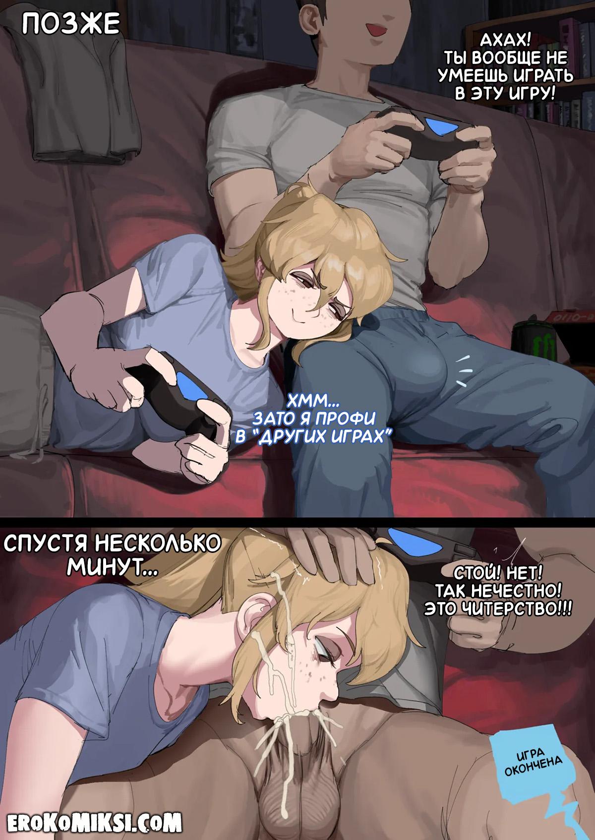 Секс комикс Эшби Мун. Конец игры. Эшби пригласила своего друга поиграть в видеоигры, но ребята знали, что играми всё это не ограничится и Эшби принялась сосать член пареньку, а затем позволила оттрахать свою тугую киску и заполнить себя горячей спермой.