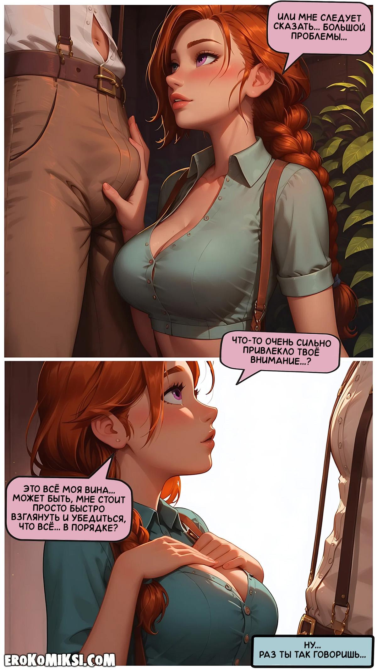 Секс комикс Ферма Лии. К Лии на ферму устраивается новый сотрудник, который сразу обращает внимание на большие сиськи красавицы, и от этого у него встаёт член. Лия замечает стояк у паренька и решает помочь ему справиться с его проблемой, и опустившись на колени, берёт его огромный член в свой нежный ротик…
