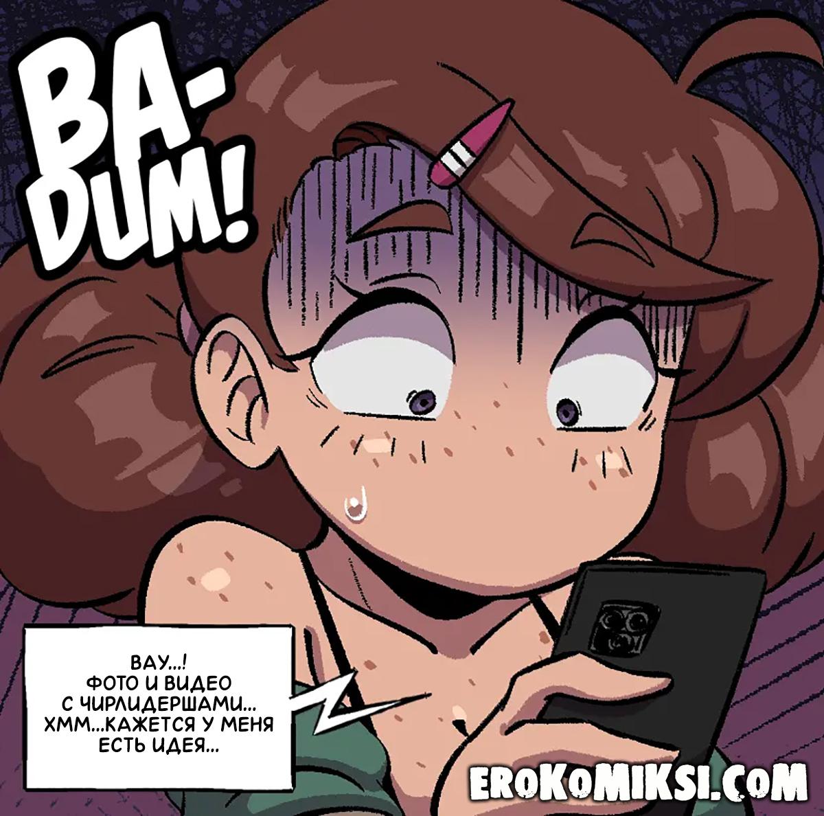 Секс комикс Фетиш моего парня. Дарла узнала, что у её парня фетиш на чирлидерш, так как в его телефоне полно порно фото и видео на эту тему. Она решила побаловать его и надела форму чирлидерши, чем вызвала у парня сильнейший стояк. Затем она потёрлась своей попкой о его член, чтобы возбудить его ещё сильнее и дала трахнуть свою киску…
