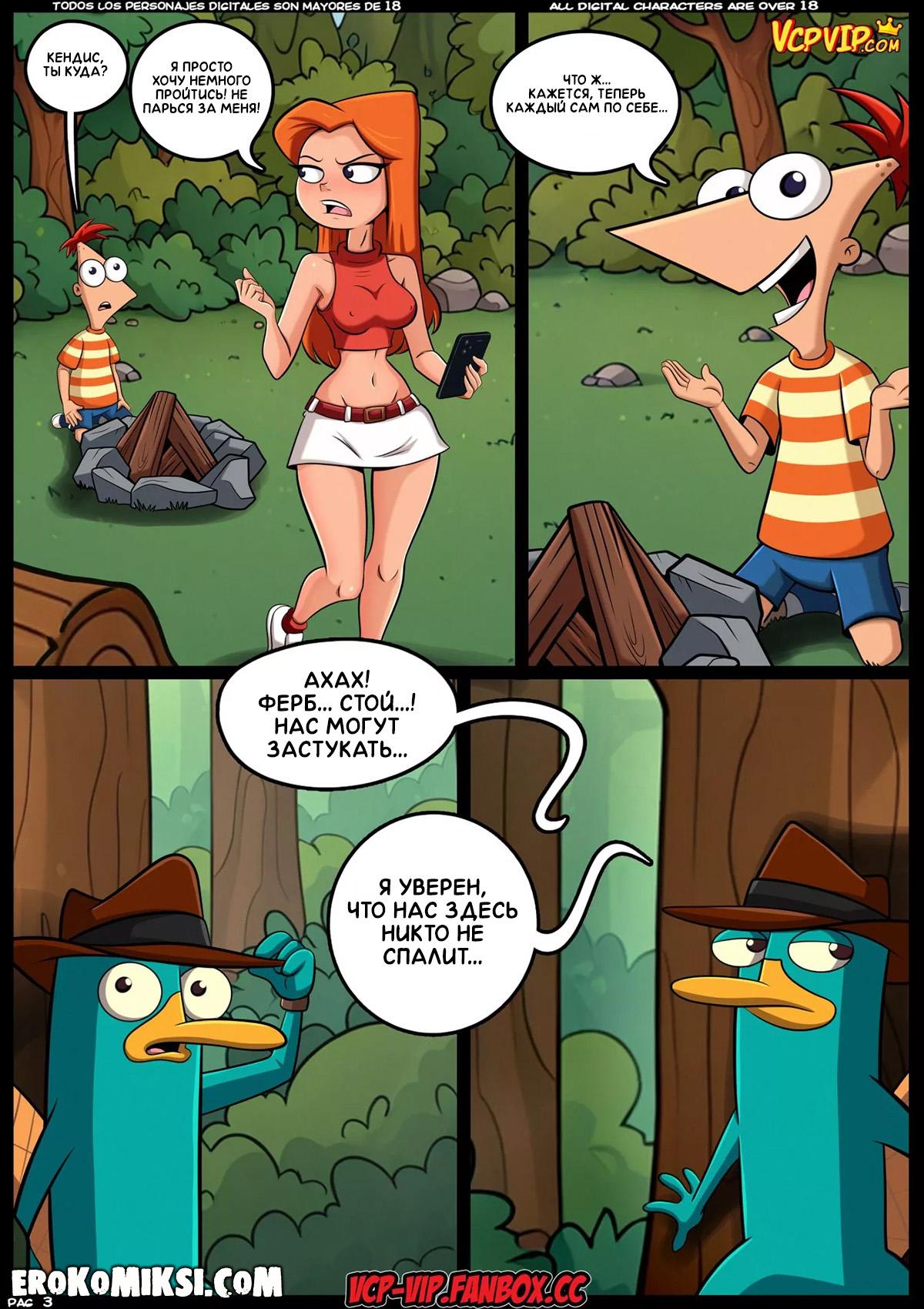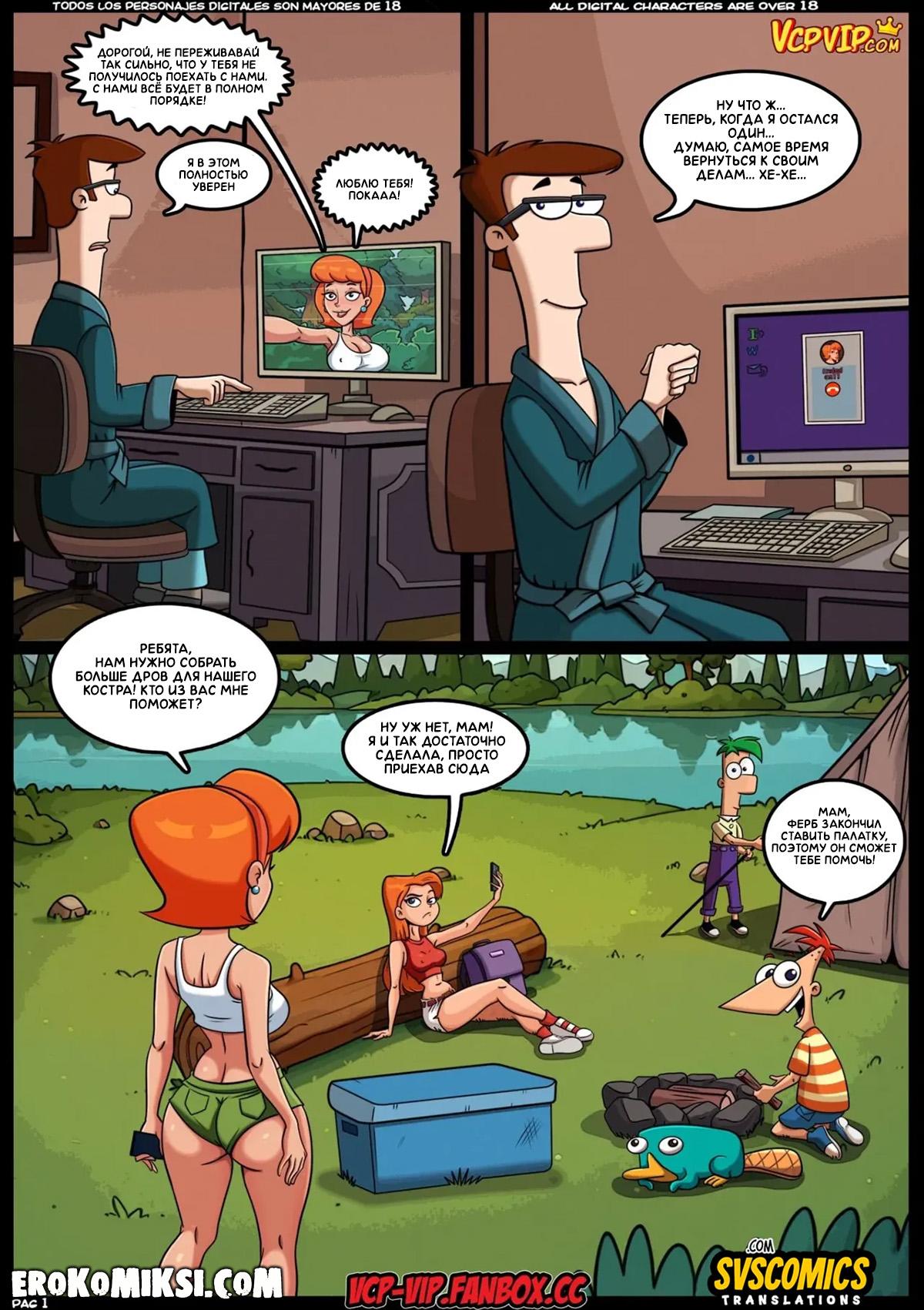 Секс комикс Финес и Ферб. Семейные Тайны. Братаны Финес и Ферб, вместе с мамой Линдой и сестрой Кэндис отправляются в туристический поход, а это значит, что у братьев будет потрясающая возможность как следует потрахаться с сексуальными красотками…