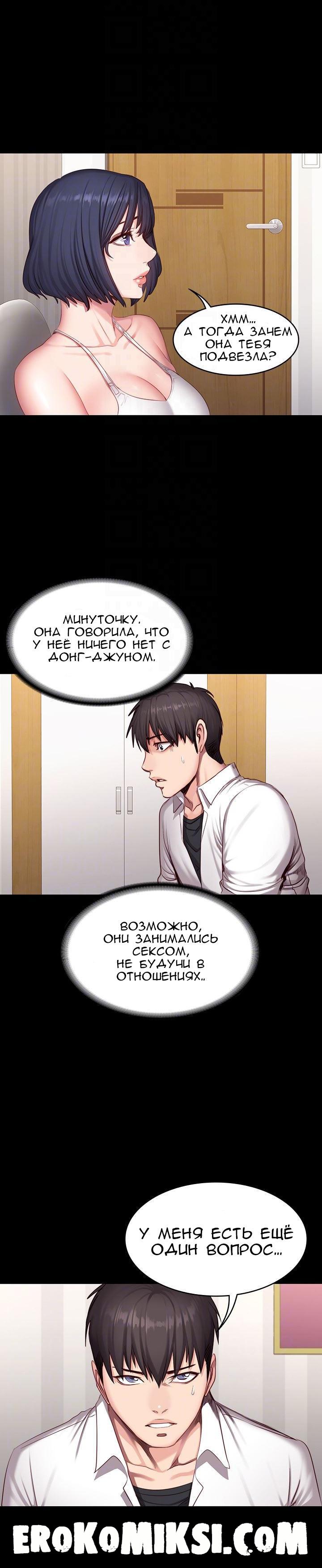 Секс комикс Фитнесс. Часть 21. Без цензуры!!! Между Хенсу и Сангми происходит откровенный разговор, в ходе которого, Хенсу признаётся, что ревнует её, однако Сангми не понимает почему, ведь они просто друзья. Также, Сангми утверждает, что не спала с Донг-Джуном и в ту ночь, когда все напились, это не она скакала на члене Хенсу…