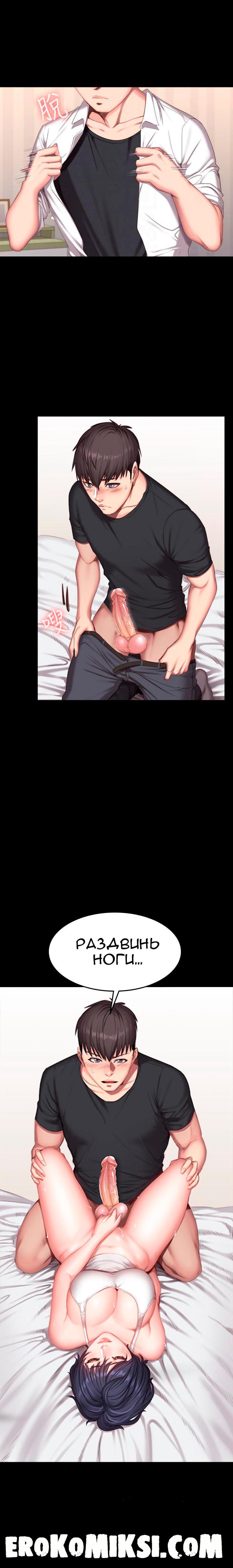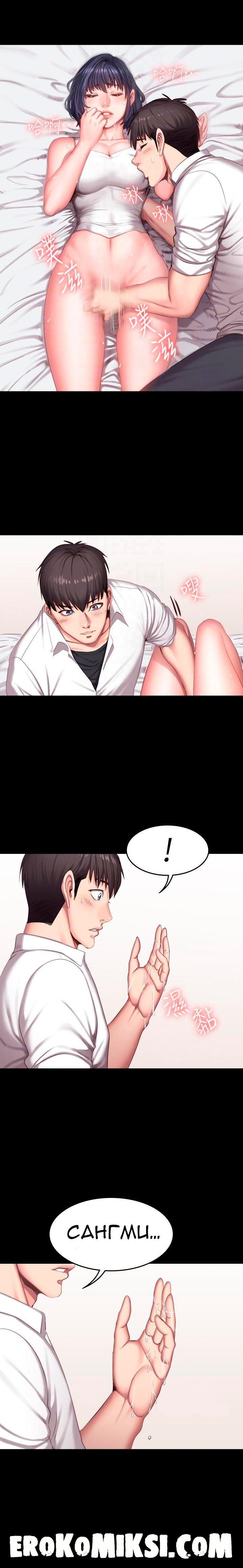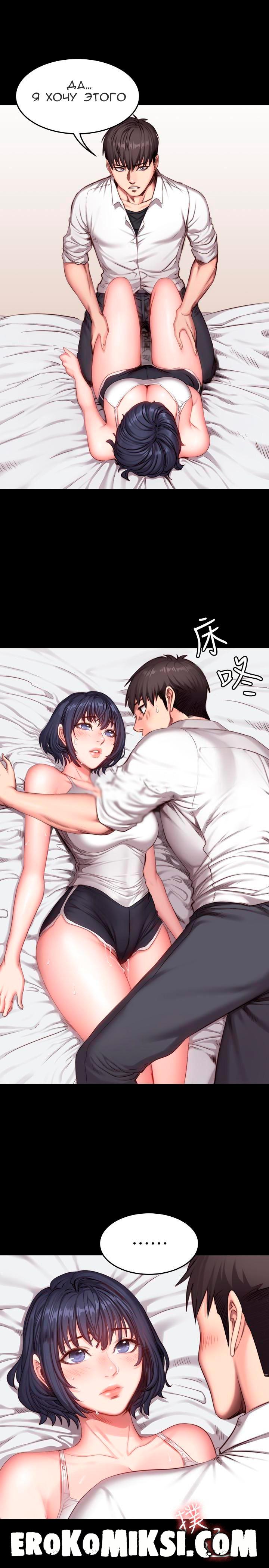 Секс комикс Фитнесс. Часть 22. Без цензуры!!! Хенсу начал стягивать с Сангми трусики и ласкать её киску пальцами, но девушка просила его остановиться. Хенсу стал более настойчив и требовал, чтобы она призналась, что она оседлала его член в ту ночь и что ей это понравилось, но Сангми продолжала всё отрицать. Её начала возбуждать ситуация с грубостью Хенсу и в итоге, она бурно кончила…