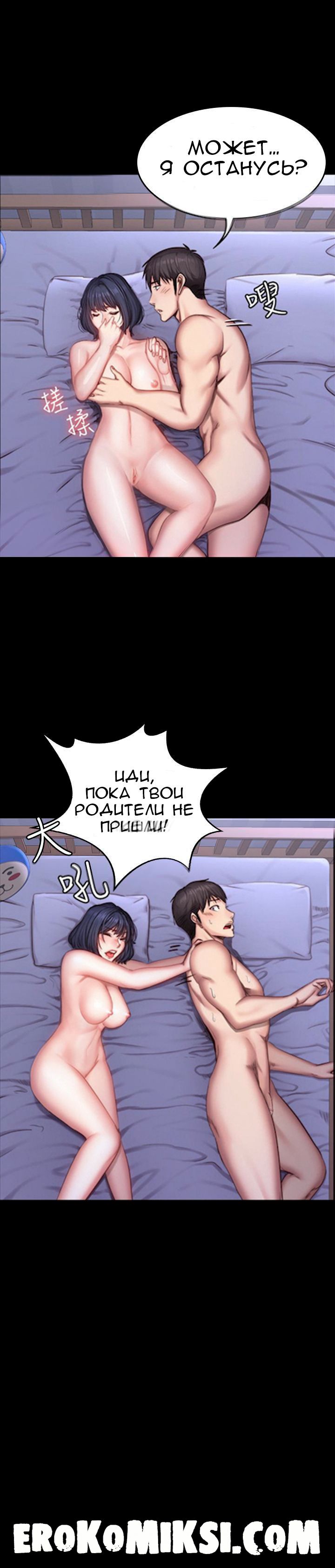 Секс комикс Фитнесс. Часть 25. Без цензуры!!! После секса, Сангми прогоняет Хенсу и он в недоумении уходит, ведь она первая начала всё это в тот день, когда все нажрались. Придя на работу, Хенсу ходит как не свой, видя это, Сон-Чжу зовёт его в подсобку и во время их разговора, она признаётся, что это она в тот день воспользовалась членом Хенсу. Парень в шоке, ведь он трахнул свою лучшую подругу…