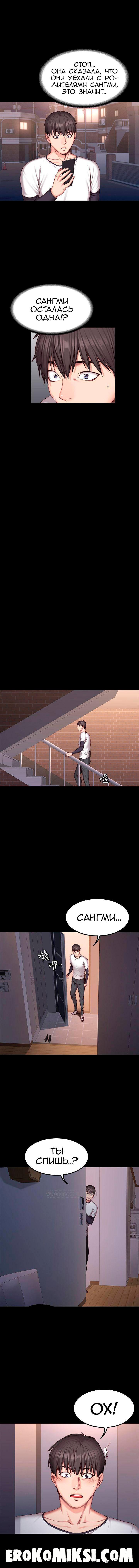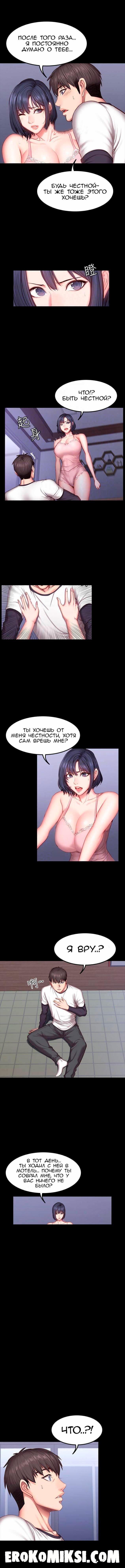 Секс комикс Фитнесс. Часть 33. Без цензуры!!! Возвращаясь от Сон-Чжу, Хенсу узнаёт, что Сангми одна дома и он сразу же мчится к ней. Увидев свою подружку, парень хочет её поцеловать, но Сангми отторгает его и Хенсу не понимает, почему она себя так ведёт, ведь она тоже этого хочет. Сангми злится и предъявляет, что Хенсу ей соврал и в ту ночь он был с Юй. Хенсу пытается всё рассказать и объяснить, что между ним и Юй ничего не было, но Сангми даже не выслушав, прогоняет парня…