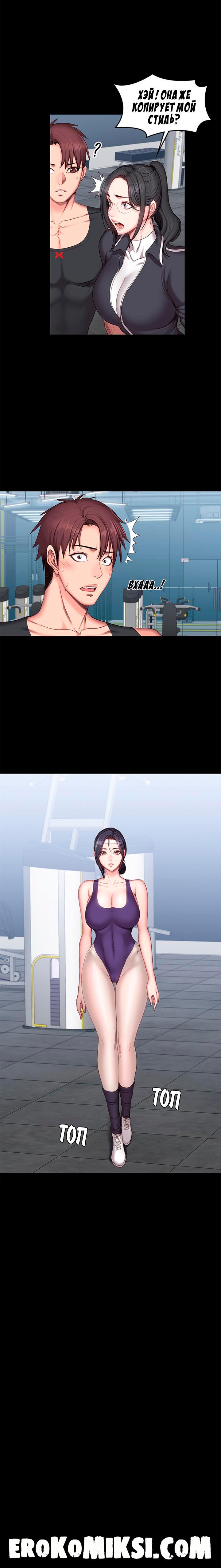 Секс комикс Фитнесс. Часть 51. Без цензуры!!! Мать Сангми, Чун-Хва, приходит на тренировку и её встречает Хенсу, но Чун-Хва намерена стать ученицей Донг-Джуна, который показался ей очень милым, когда приглашал на тренировку. Донг-Джун сразу же обратил внимание на глубокий вырез декольте Чун-Хва, из которого буквально вываливались её огромные сиськи. А когда Чун-Хва переоделась в форму для занятий, Донг-Джун вообще потерял дар речи…