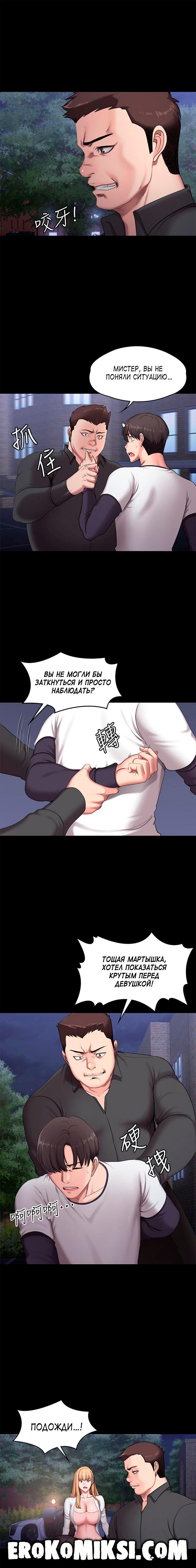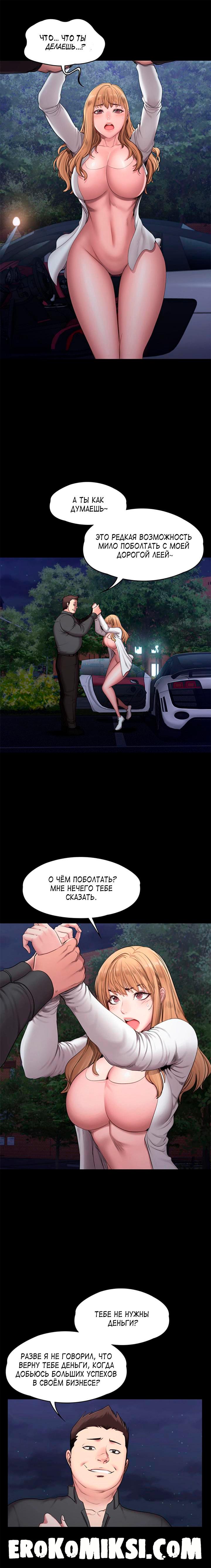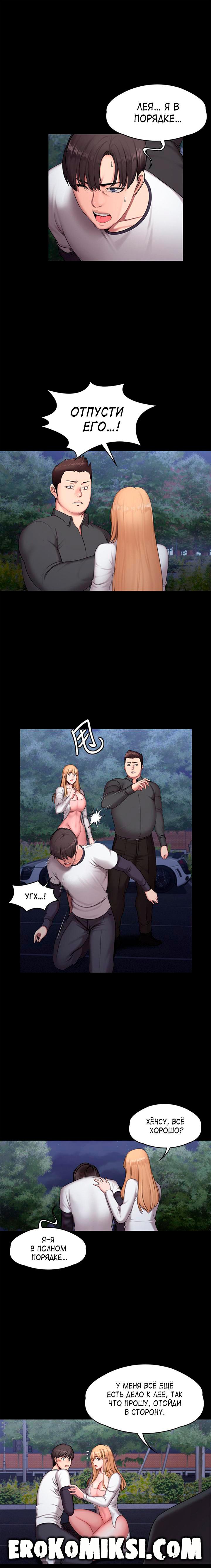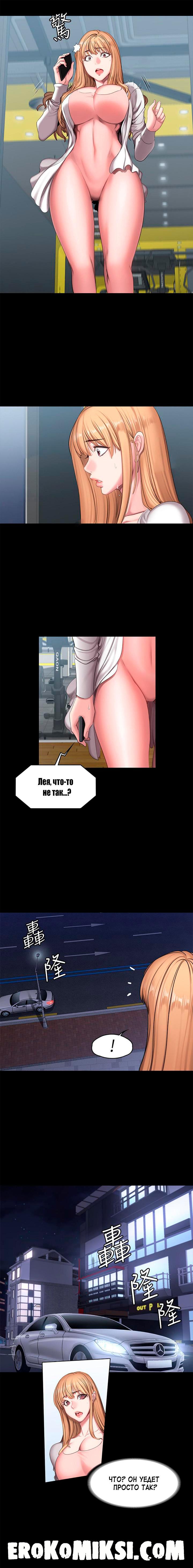 Секс комикс Фитнесс. Часть 57. Без цензуры!!! В момент разговора по телефону с Хенсу, Лея видит, как преследовавший её незнакомец уезжает и Лея говорит Хенсу, что приезжать не нужно. Но Хенсу всё равно решает выяснить в чём дело и отправляется в зал. Лея бежит к своей машине и на неё нападает преследовавший её незнакомец и начинает вымогать деньги на какое-то дело. В это время появляется Хенсу и вступается за Лею, но незнакомец оказывается намного сильнее…