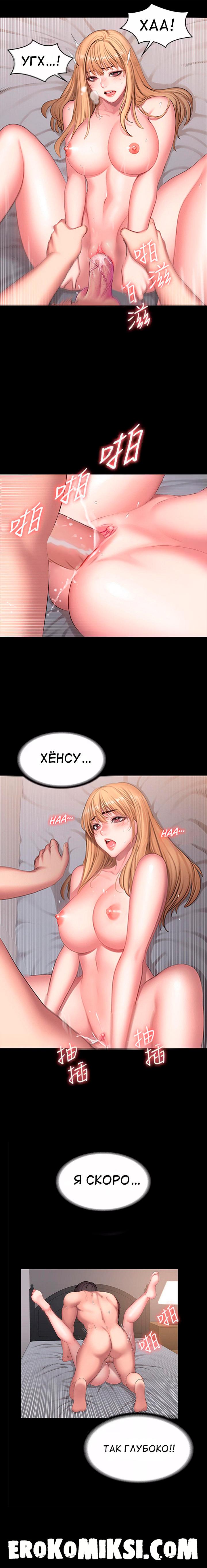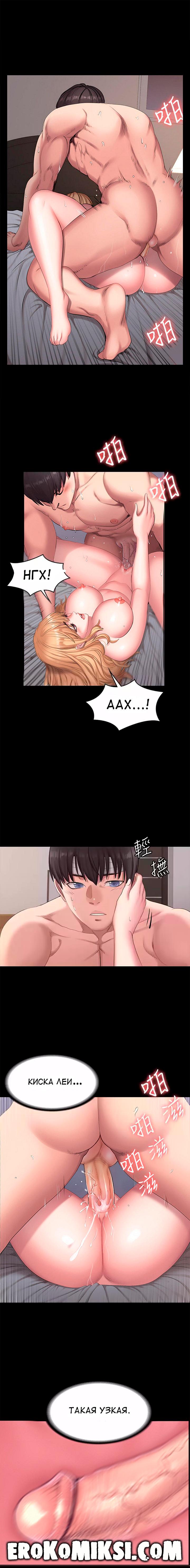 Секс комикс Фитнесс. Часть 60. Без цензуры!!! Хенсу с агрессией сорвал с Леи остатки одежды и бросил её на кровать. Лея начала немного стесняться, что она голая лежит перед Хенсу, тем более она пребывала в шоке от того, что Хен может быть таким агрессивным. Парень припал языком к сочной киске Леи и начал жадно её вылизывать, а затем вставил в неё свой член и начал с агрессией трахать. Леи очень нравилась такая агрессия Хенсу и это ещё сильнее возбуждало её…