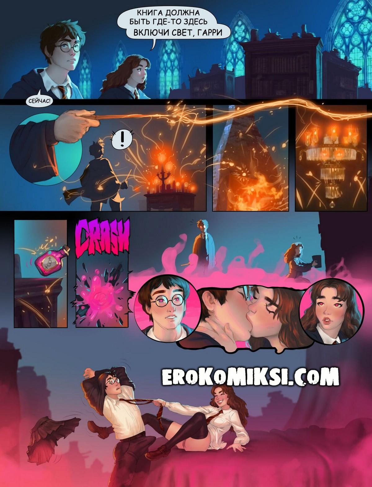Секс комикс Гарри Поттер. Гарри и Гермиона в комнате требований. Гарри и Гермиона вошли в комнату требований, что бы найти книгу. Они случайно разбили флакон с сильными феромонами и сразу же их окутала сильная страсть, которая заставила их потрахаться…