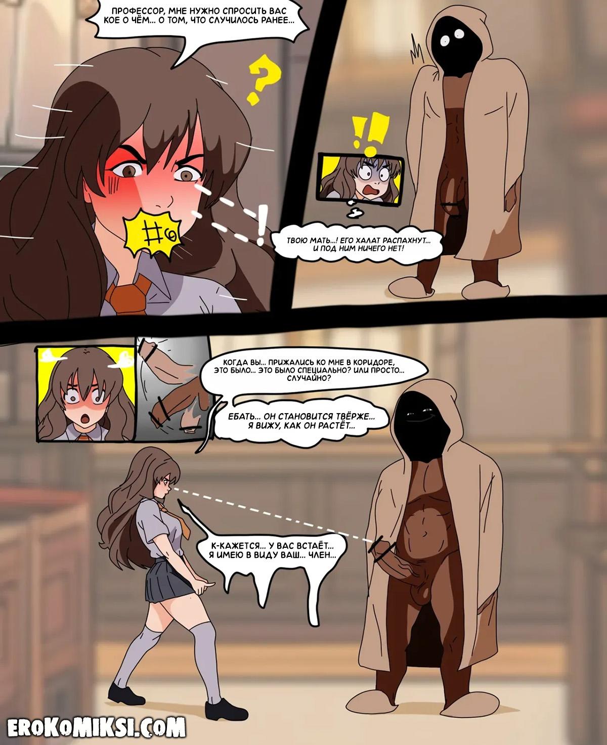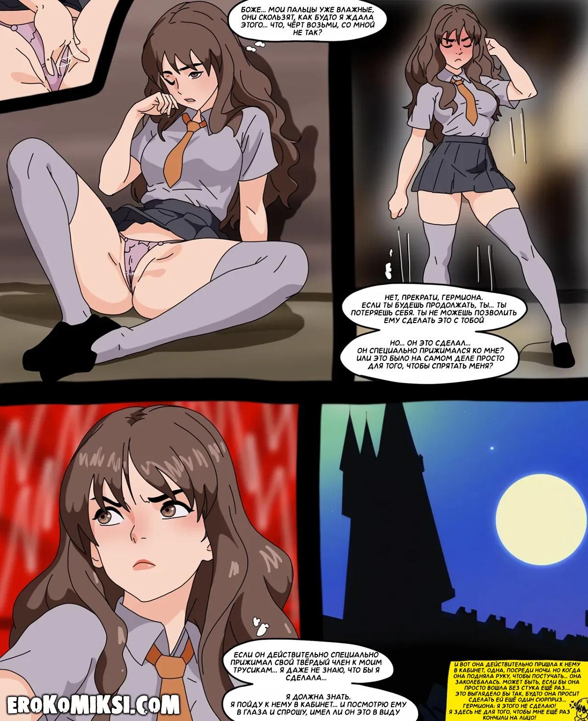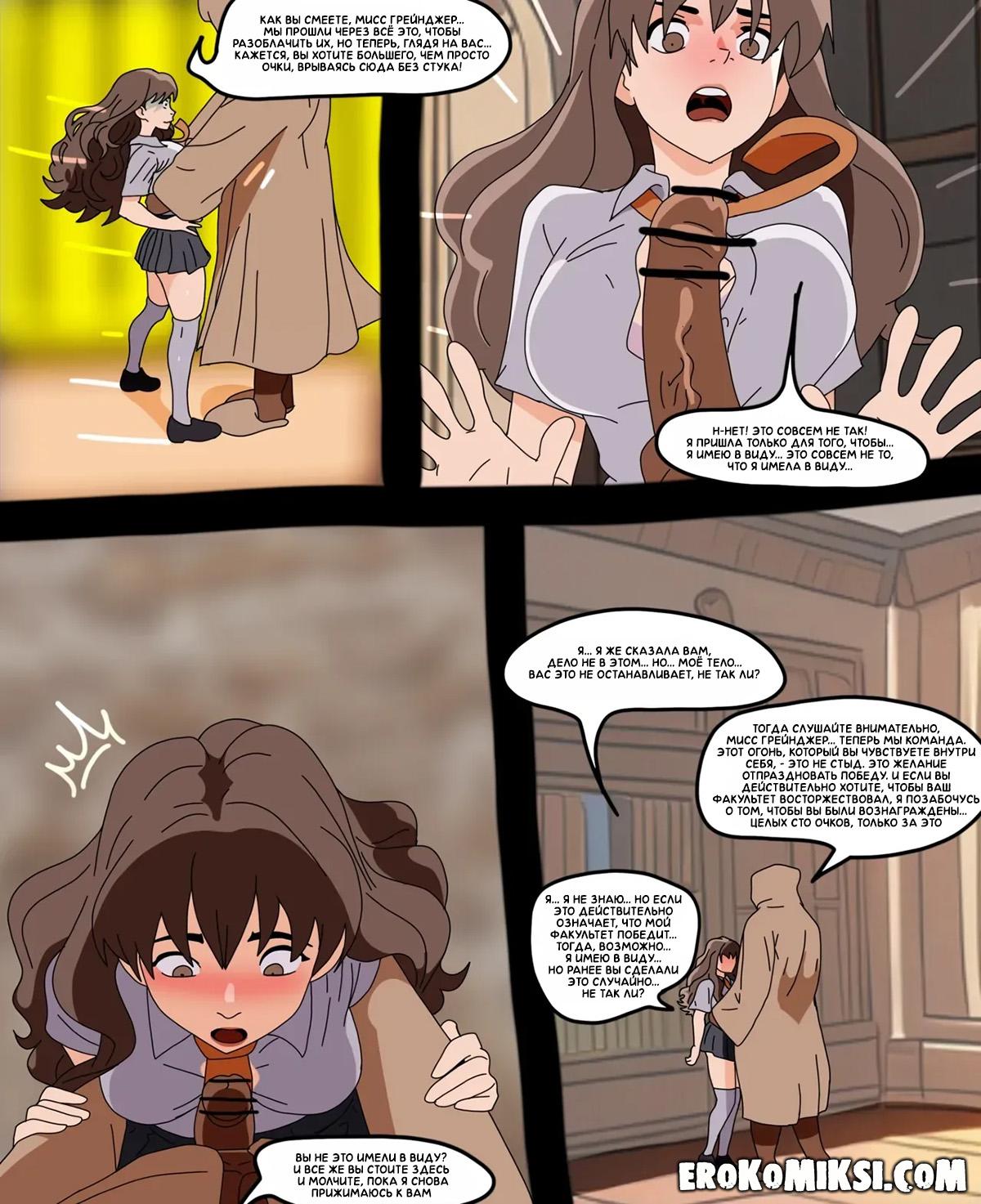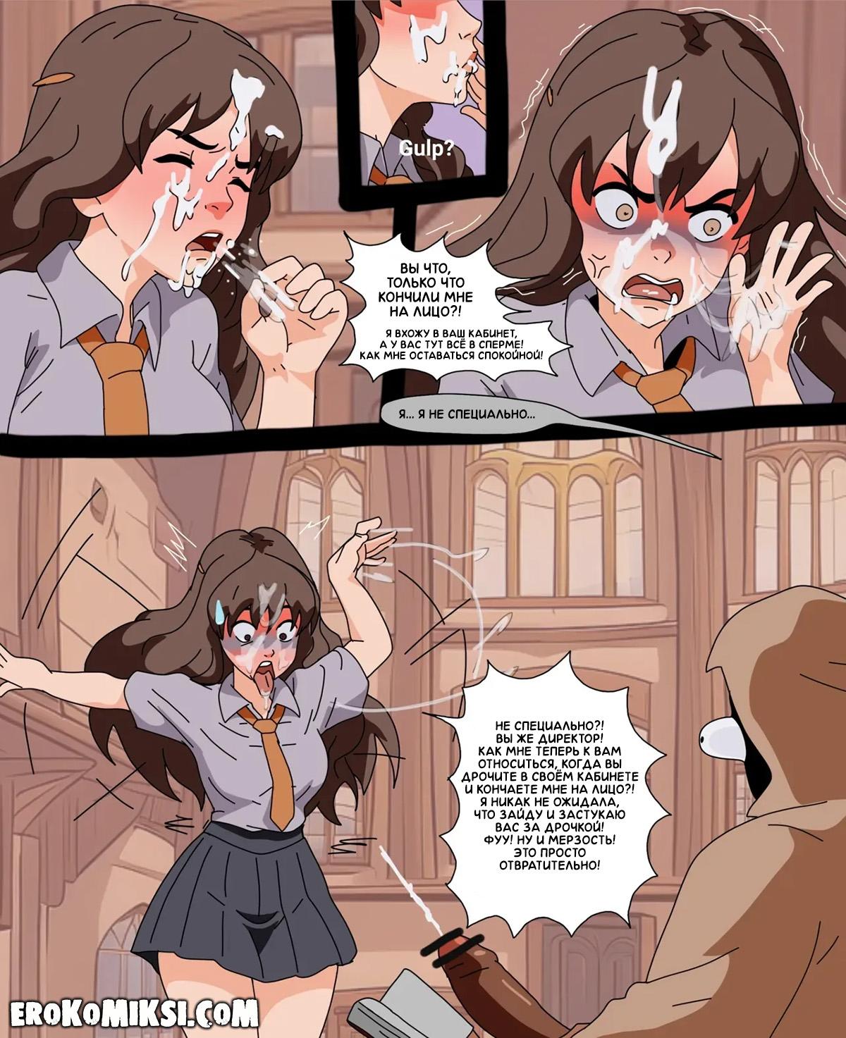 Секс комикс Гарри Поттер. Личные очки Гермионы. Гермиона отправляется к директору, чтобы пожаловаться на остальных учеников, но ворвавшись к нему в кабинет, застаёт профессора дрочащего свой огромный член и получает огромную порцию горячей спермы себе в лицо…
