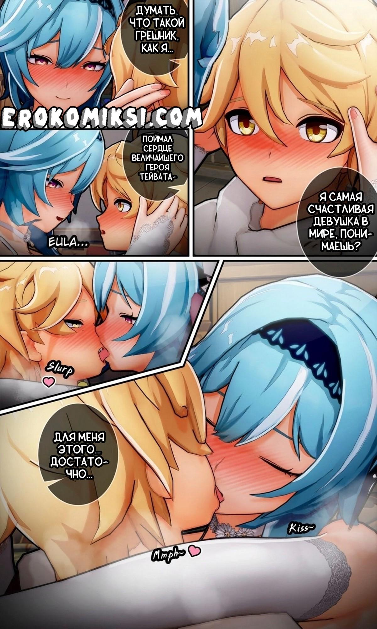 Секс комикс Genshin Impact. Я тебе нравлюсь. Часть 2. Эфир и Еула, наконец-то, встретились спустя долгое время и почти сразу после короткого диалога начали ублажать друг друга. Так всё это переросло в жёсткий и страстный секс…
