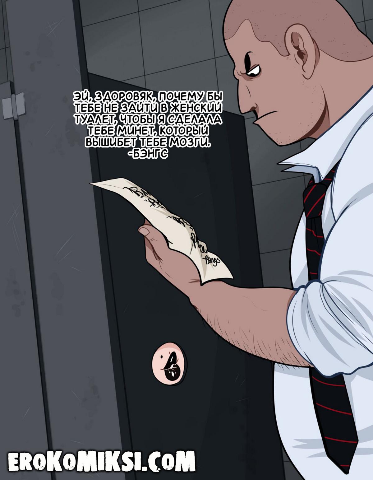 Секс комикс Глори Хол. В школьном туалете есть знаменитая глори-хол, куда девчонки приглашают понравившихся им парней, чтобы анонимно удовлетворить их и посмотреть на размеры их приборов. В этот раз, настала очередь Бэнгс, которая пригласила туда одного здоровяка. Увидев член, Бэнгс принялась отсасывать его с диким рвением, от чего сильно возбудилась и подставила под отверстие свою сочную тугую задницу и была благополучно оттрахана…