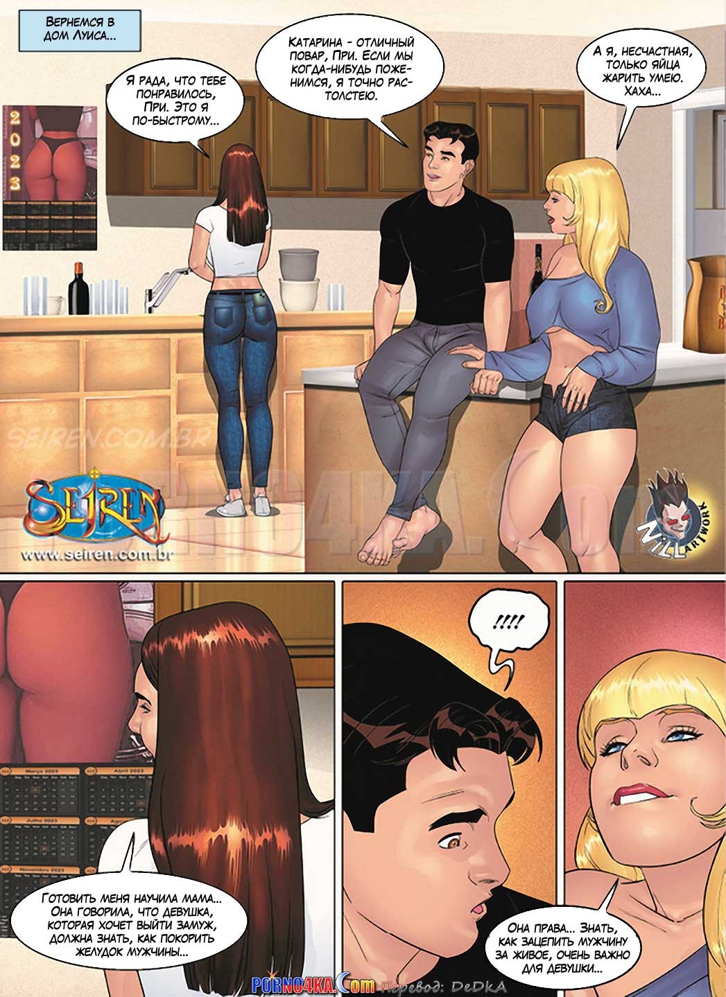 Секс комикс Горячая кузина. Часть 27. Присцила, соскучившись по сексу с Луисом без предварительного предупреждения пришла к нему домой, но оказалось, что у Луиса дома в это время была подружка, с которой у него все настолько серьезно, что вот-вот может закончиться свадьбой! Но Присцила не привыкла сдаваться, она пришла за жестким сексом и намерена получить то, за чем пришла…