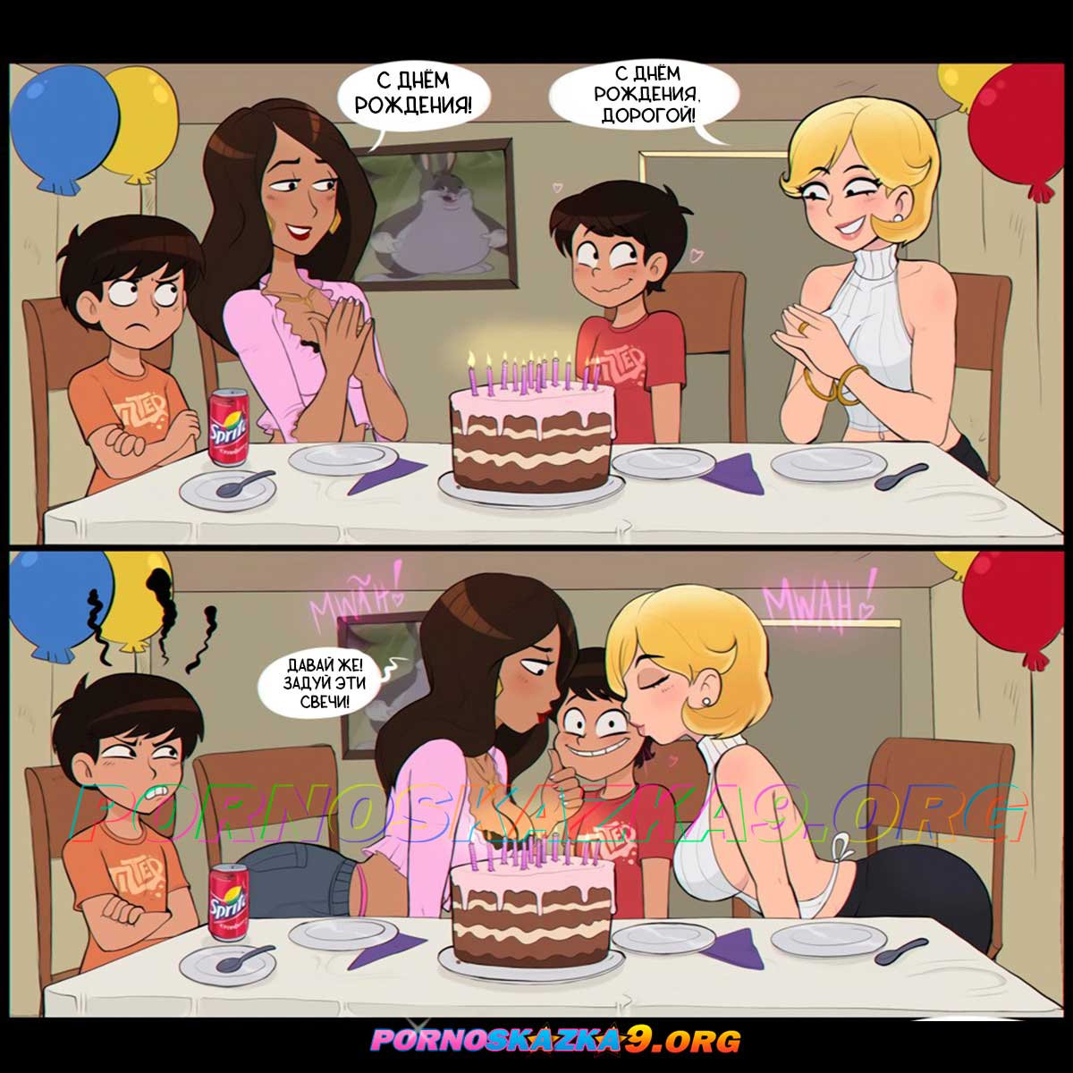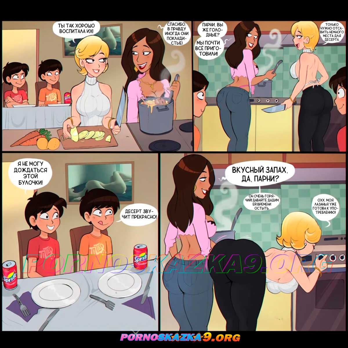 Секс комикс Горячие блюда тети и мамы. Shadbase. ShadMan. Горячие милфы любят своих отпрысков, поэтому каждый праздник устраивают им грандиозный стол. Сначала они дают попробовать свои горячие мокрые киски язычком, а после и кричат от удовольствия во время жёсткой ебли…