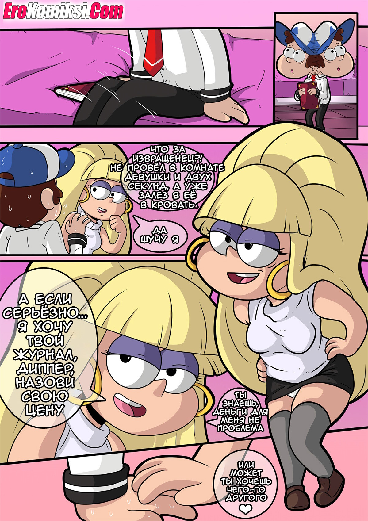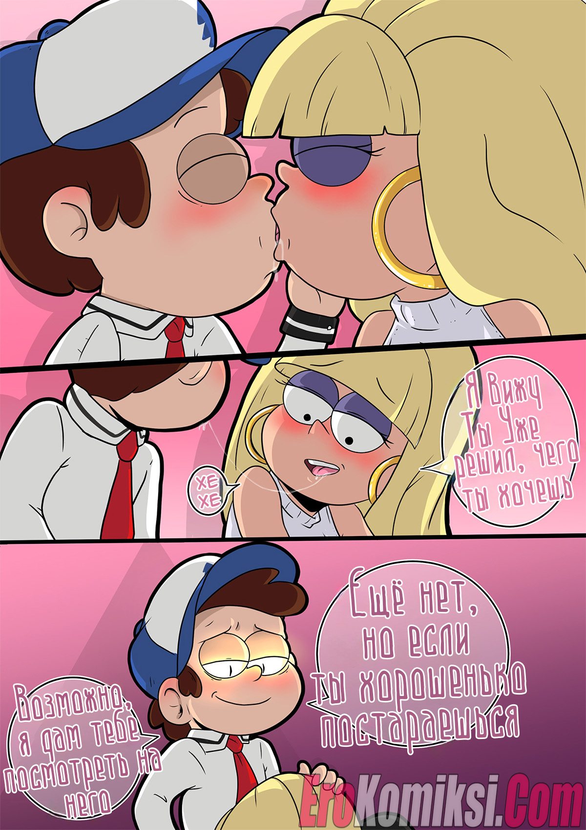 Секс комикс Гравити Фолз. Черная Библия. Gravity Falls and Bible Black. Indecente Сексульная блондинка попросила Диппера проводить ее до дома. Там они оба возбудились из-за журнала парня, поэтому девушка разделась перед парнем и отсосала его большой член…