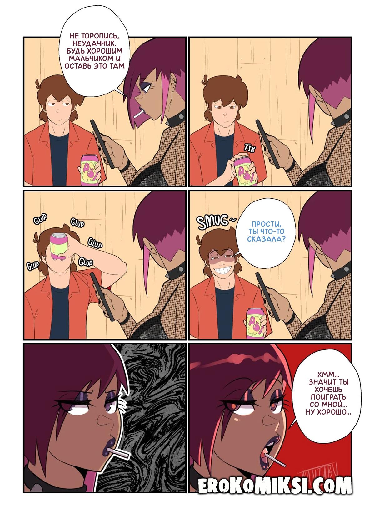 Секс комикс Гравити Фолз. Диппер и Тэмбри. В магазин к Венди явилась хулиганка Тэмбри, но Венди замещал Диппер и Тэмбри начала оскорблять и чушить паренька. Дипперу это не понравилось и он решил дерзить ей в ответ. Непривыкшая к такому со стороны других, Тэмбер, поняла, что пареньку нужно преподать урок. Она увела его в подсобку и трахала там, пока парень не осознал свою ошибку…