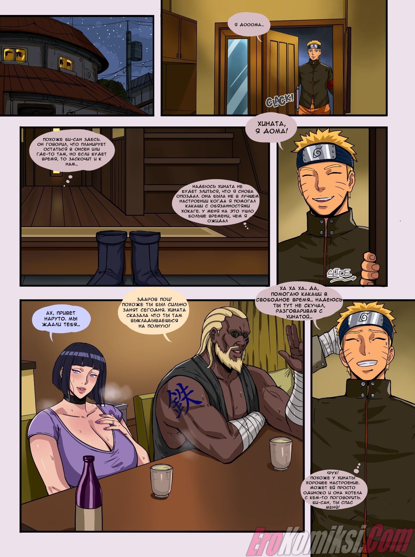 Секс комикс Хината, Би-сан и Наруто, который всегда занят. Часть 2. И вновь большегрудая и сочная Хината поразит нас своими умениями в сексе. А умеет она очень многое… Хината оказалась ещё той потаскушкой, ведь будучи замужем за Наруто, она не стесняясь принимает любовника в собственном доме, а наивный Наруто думает, что с этим мужчиной его жена просто общается от скуки.