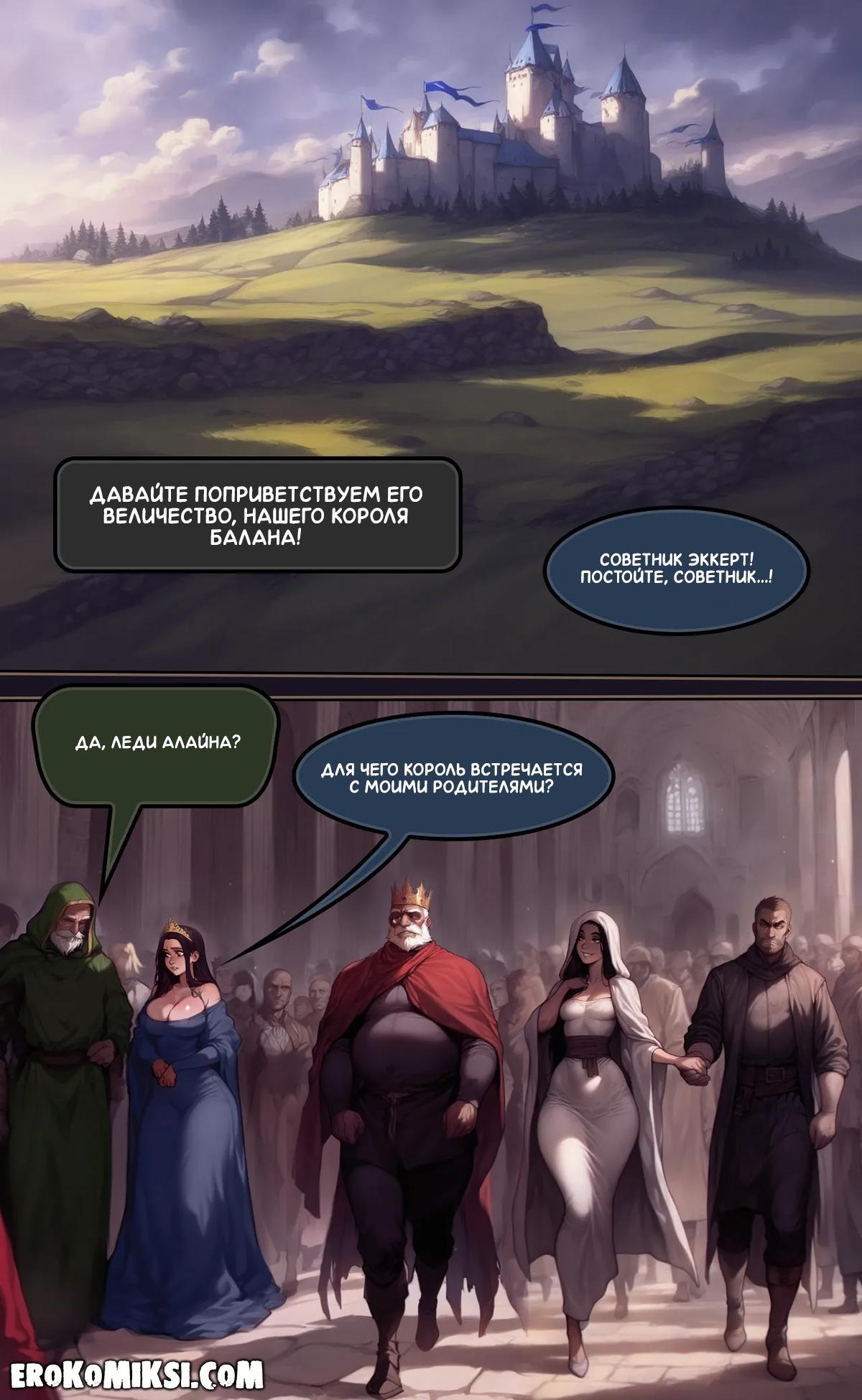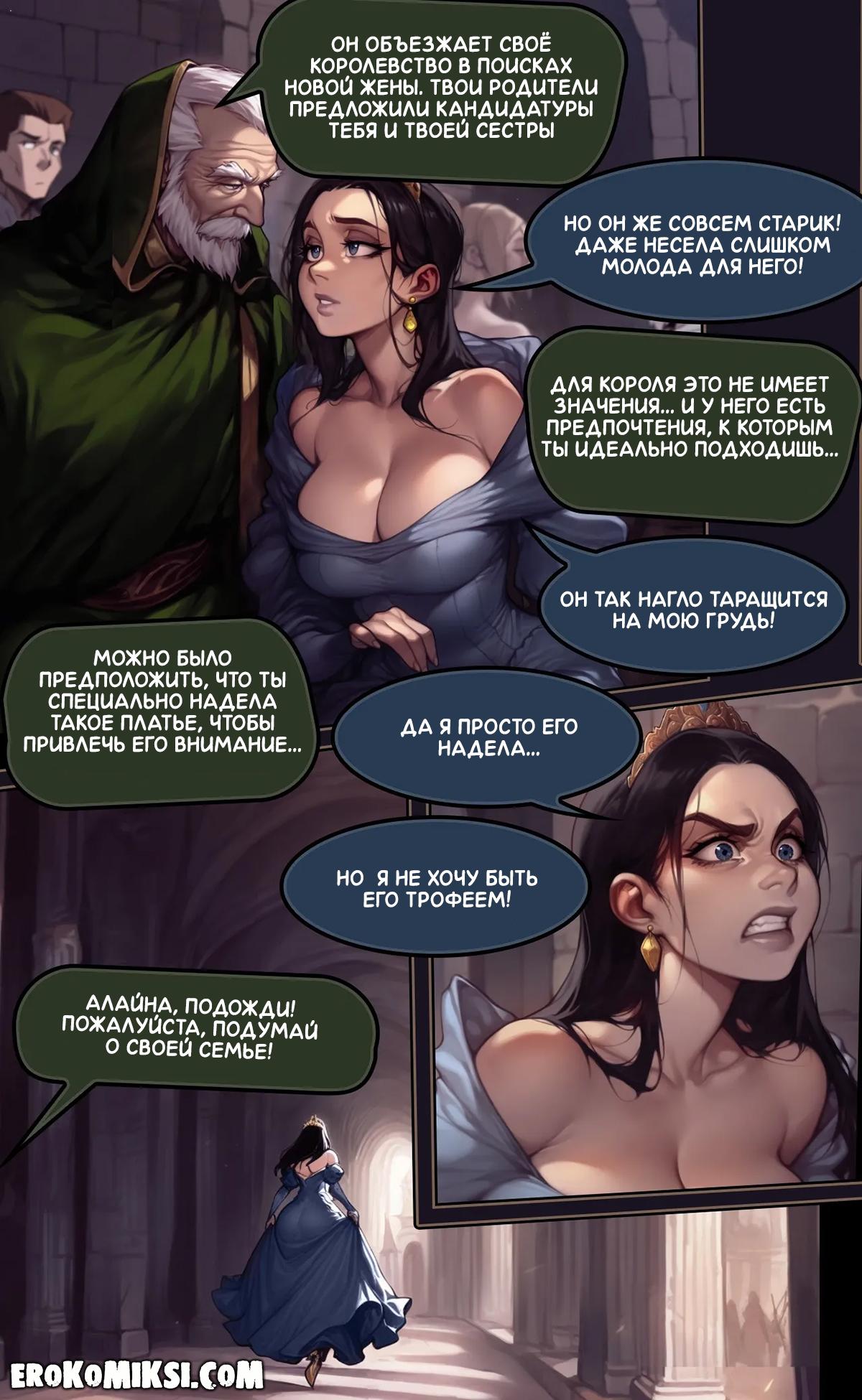 Секс комикс Хроники Харпера: Новая королева. Эпилог. Король Балан искал себе новую жену, и родители красавицы Алайны выдвинули кандидатуру своей дочери, которая не хотела выходить за короля, но в дело вмешался маг, который загипнотизировал девчонку, после чего она с радостью согласилась стать новой королевой…